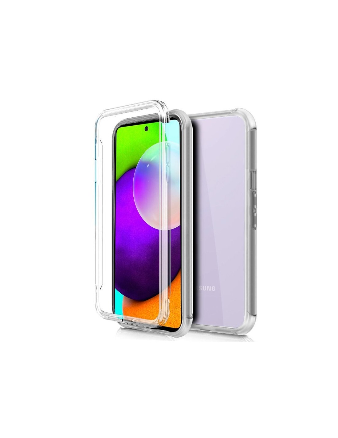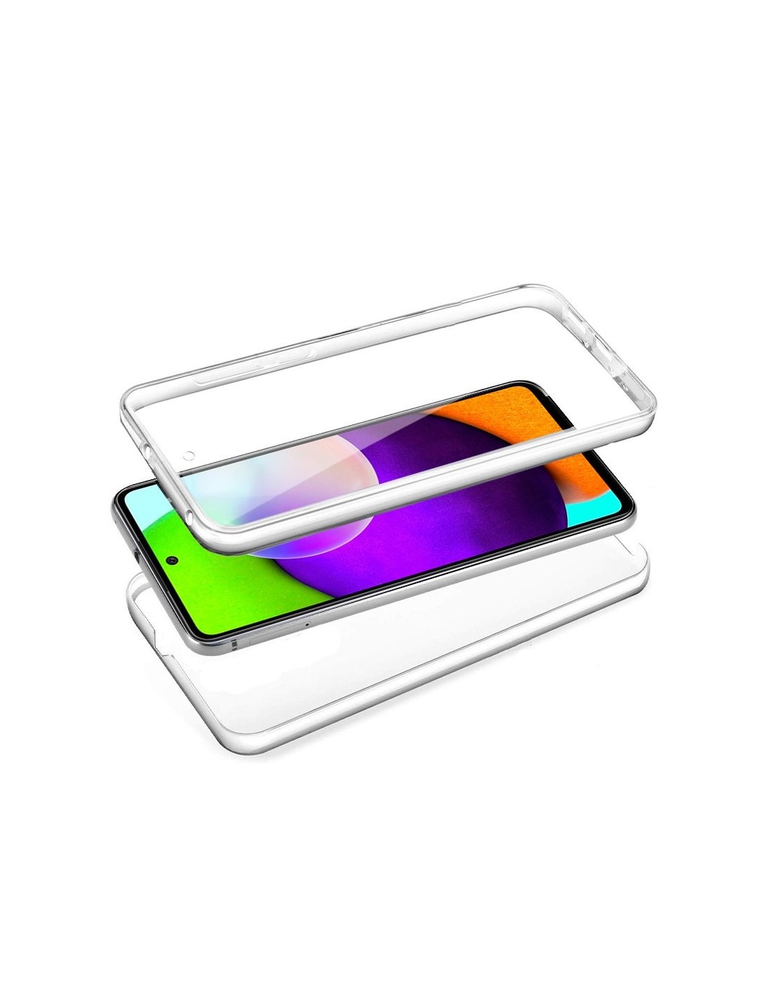 Funda resistente para móvil, de tipo transparente, silicona semirígida 360º, cubre parte frontal y trasera del smartphone.