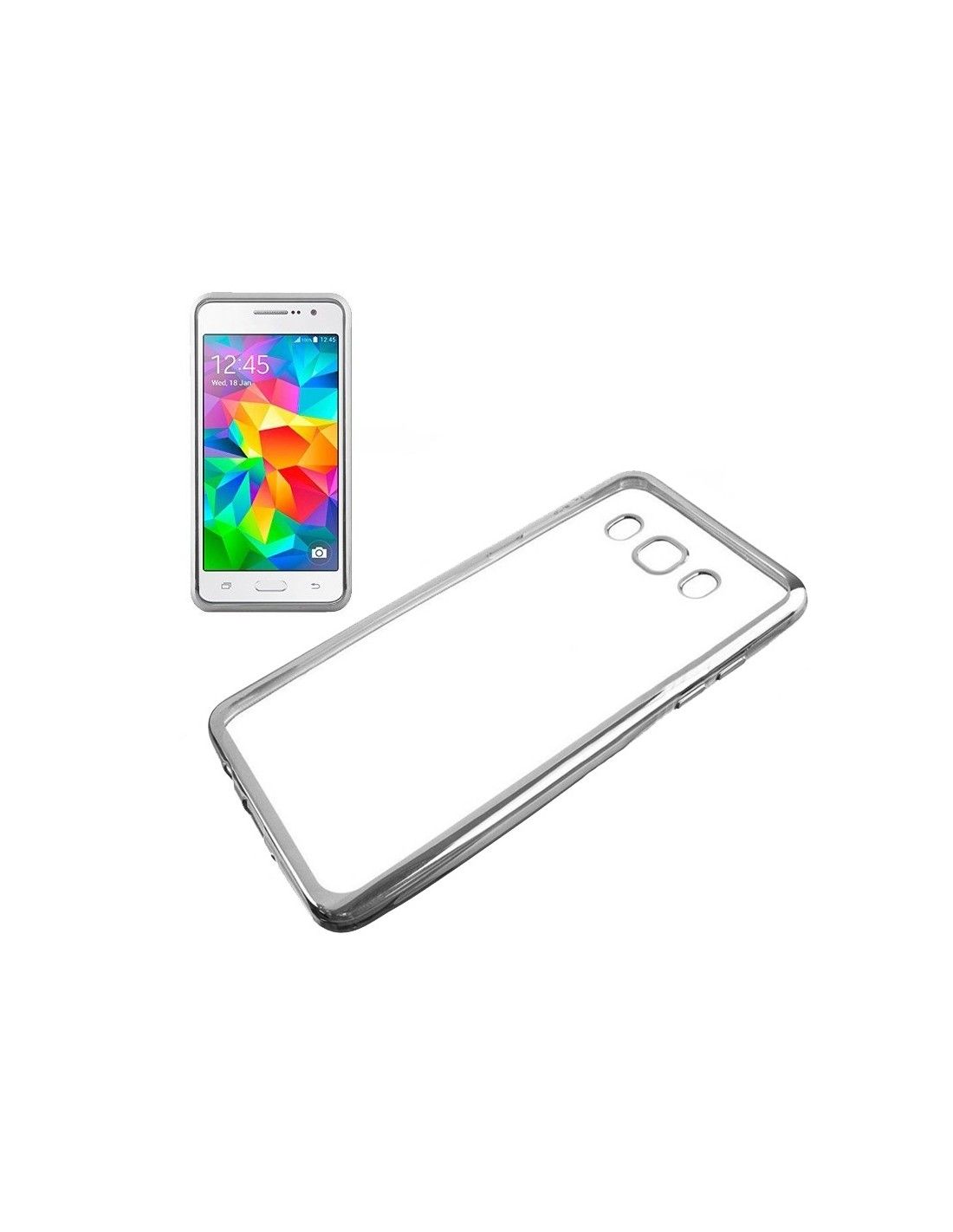 Carcasa TPU transparente Samsung G530 Galaxy Grand Prime borde metalizado plata