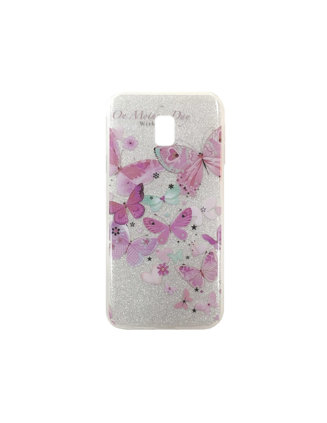 Carcasa TPU purpurina Samsung J330 Galaxy J3 (2017) diseño plata Mariposas rosas