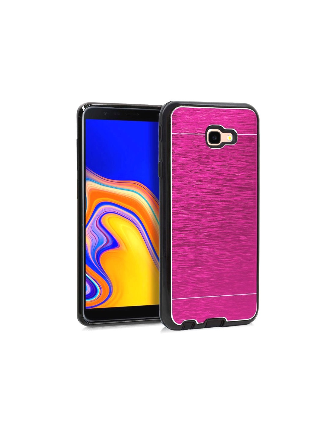 Carcasa metalizada en aluminio con cama interior de gel TPU para Samsung J410 Galaxy J4 Plus.