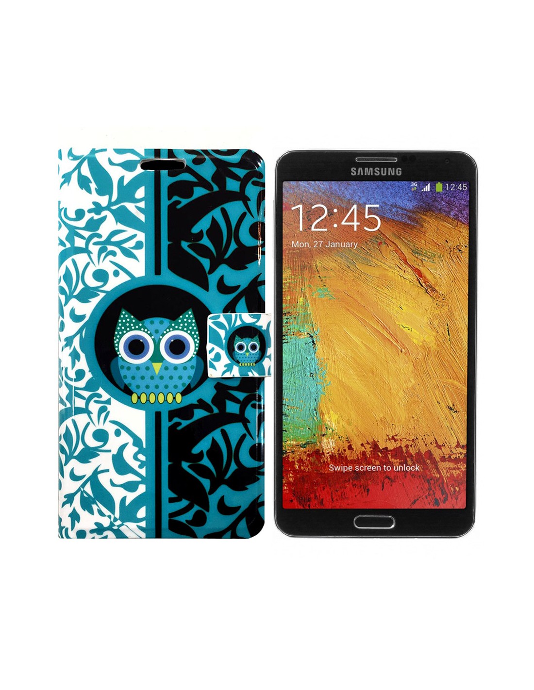 Funda libro soporte TPU Samsung Galaxy Note 3 (N9000 / N9005) diseño Búho azul