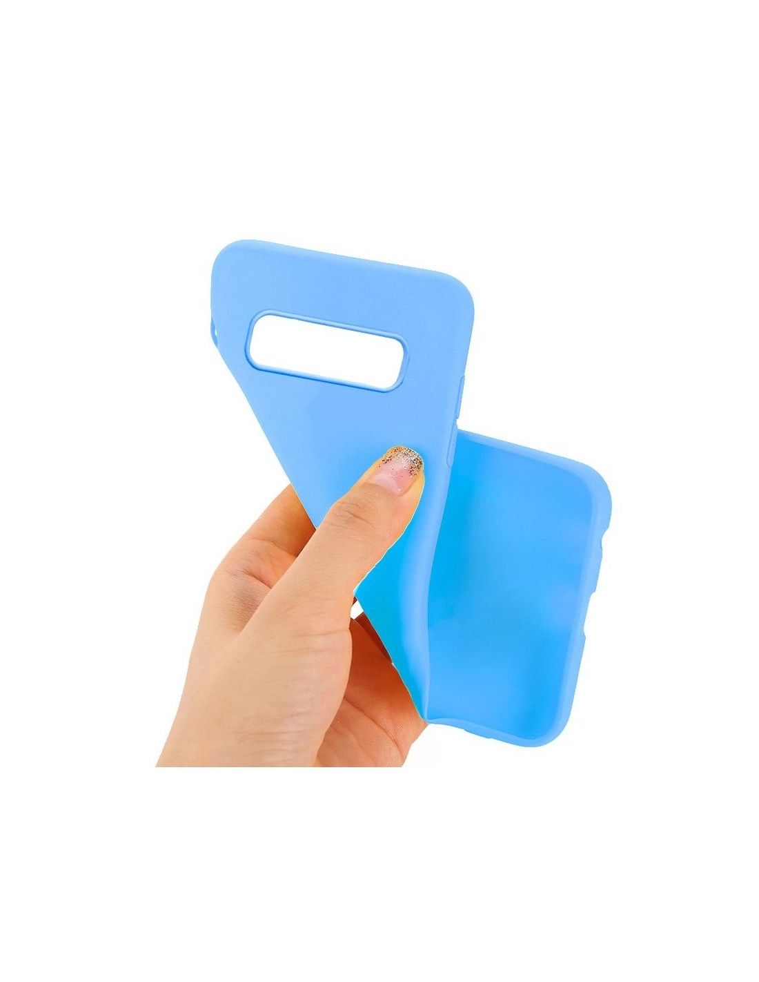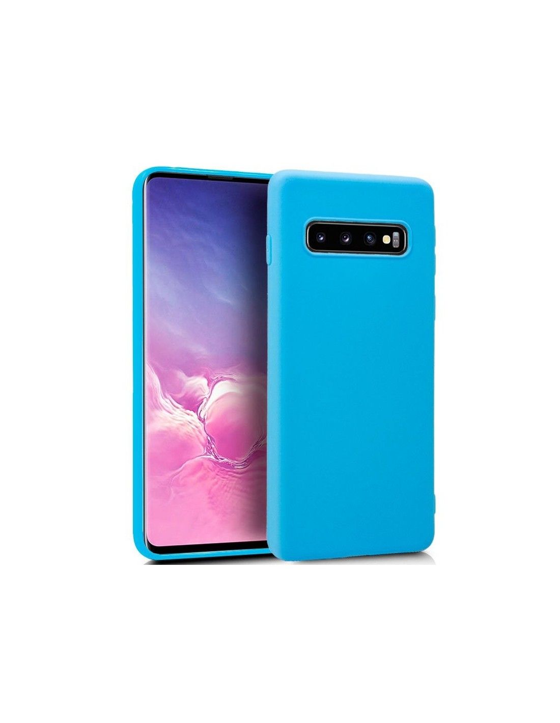 Funda silicona Samsung G973 Galaxy S10 de color celeste.