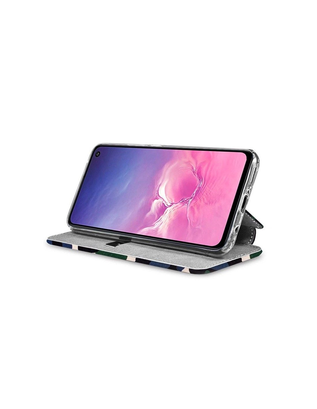 La funda incorpora una carcasa en la que se encaja el Samsung G970 Galaxy S10e quedando perfectamente fijado.