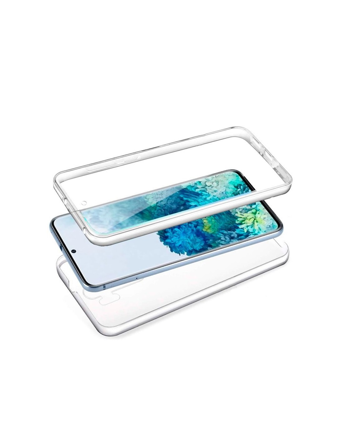 Funda tipo gel TPU 360º, cubre parte frontal y trasera del smartphone.