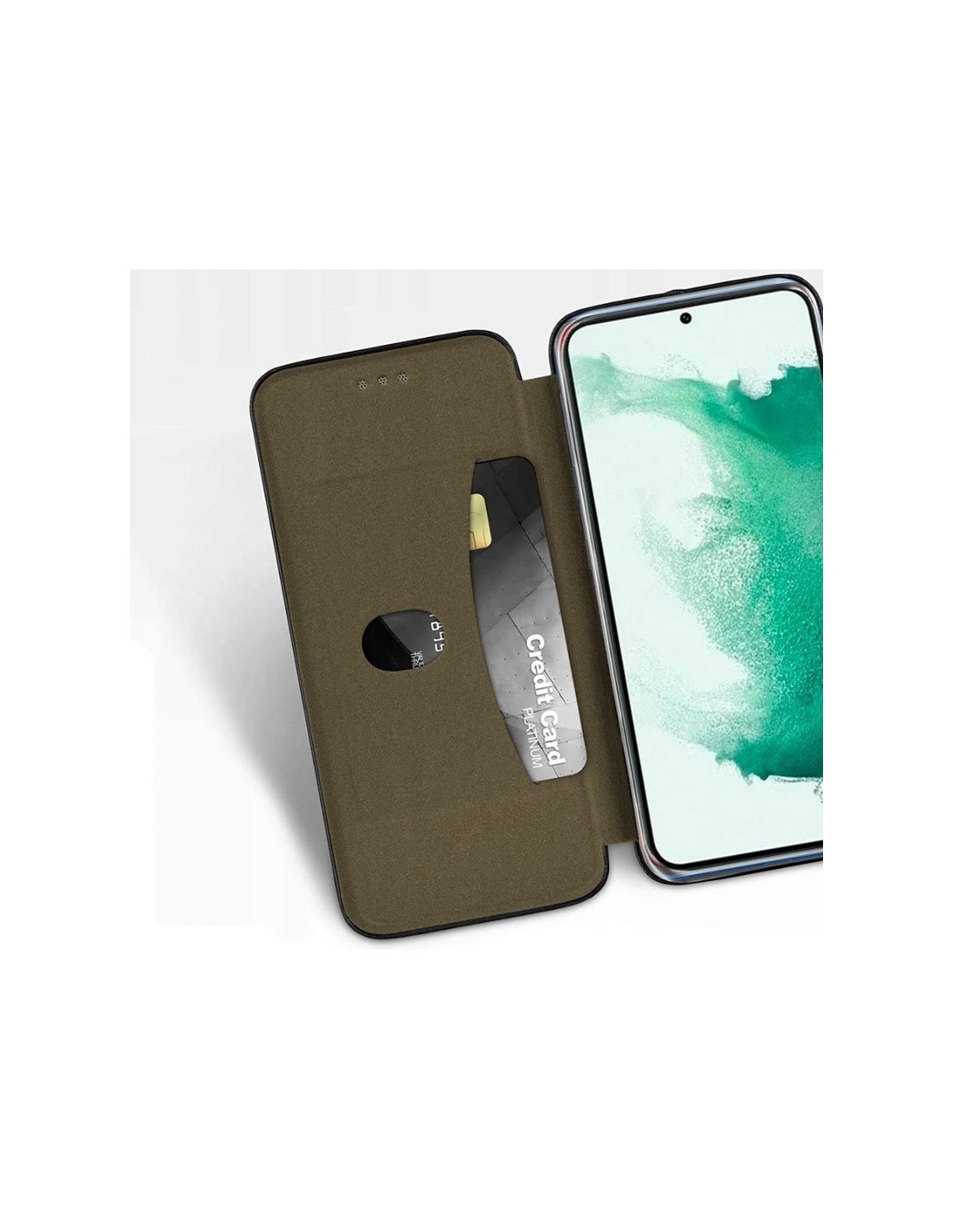 Incorpora en uno de los lados interiores, un bolsillo para meter tarjetas. También puedes mantener tu smartphone apoyado tanto de manera vertical como horizontal, para ver tus vídeos favoritos, ya que el pliegue de la funda hace de soporte.