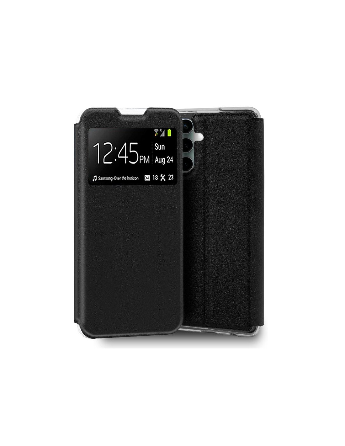 Apertura lateral tipo libro. Incorpora una carcasa en el interior de gel TPU específica del modelo indicado, en la que se encaja el móvil y queda perfectamente sujeto y protegido.
