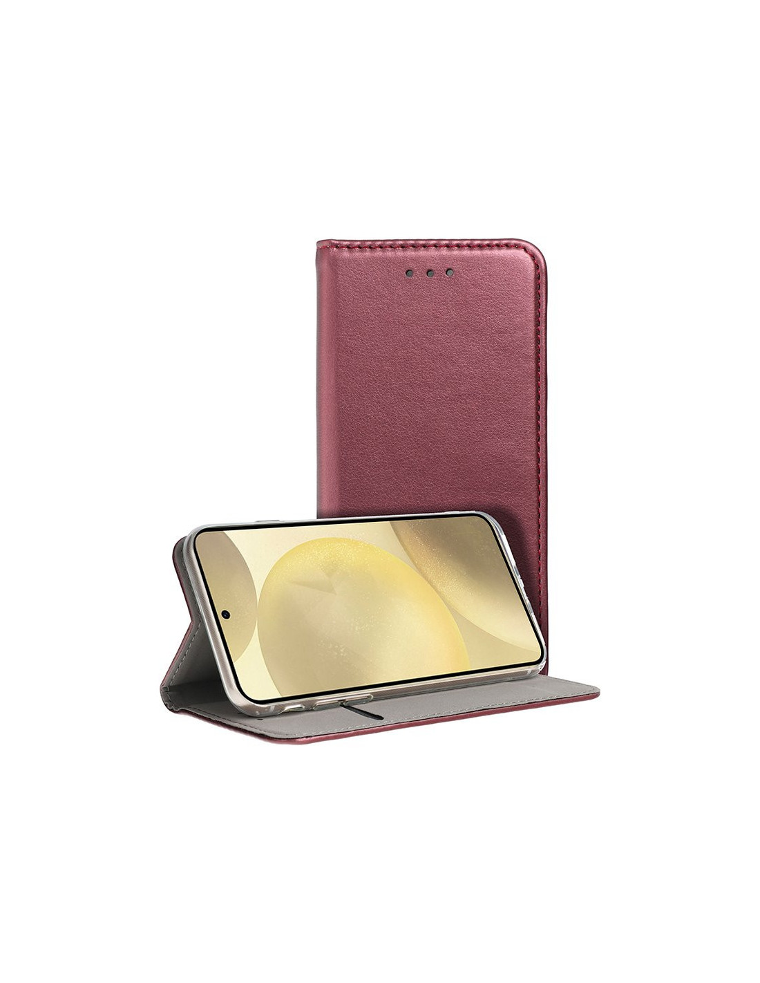Apertura lateral tipo libro. Incorpora una carcasa específica del modelo de smartphone, para incrustarlo y dejarlo perfectamente encajado.