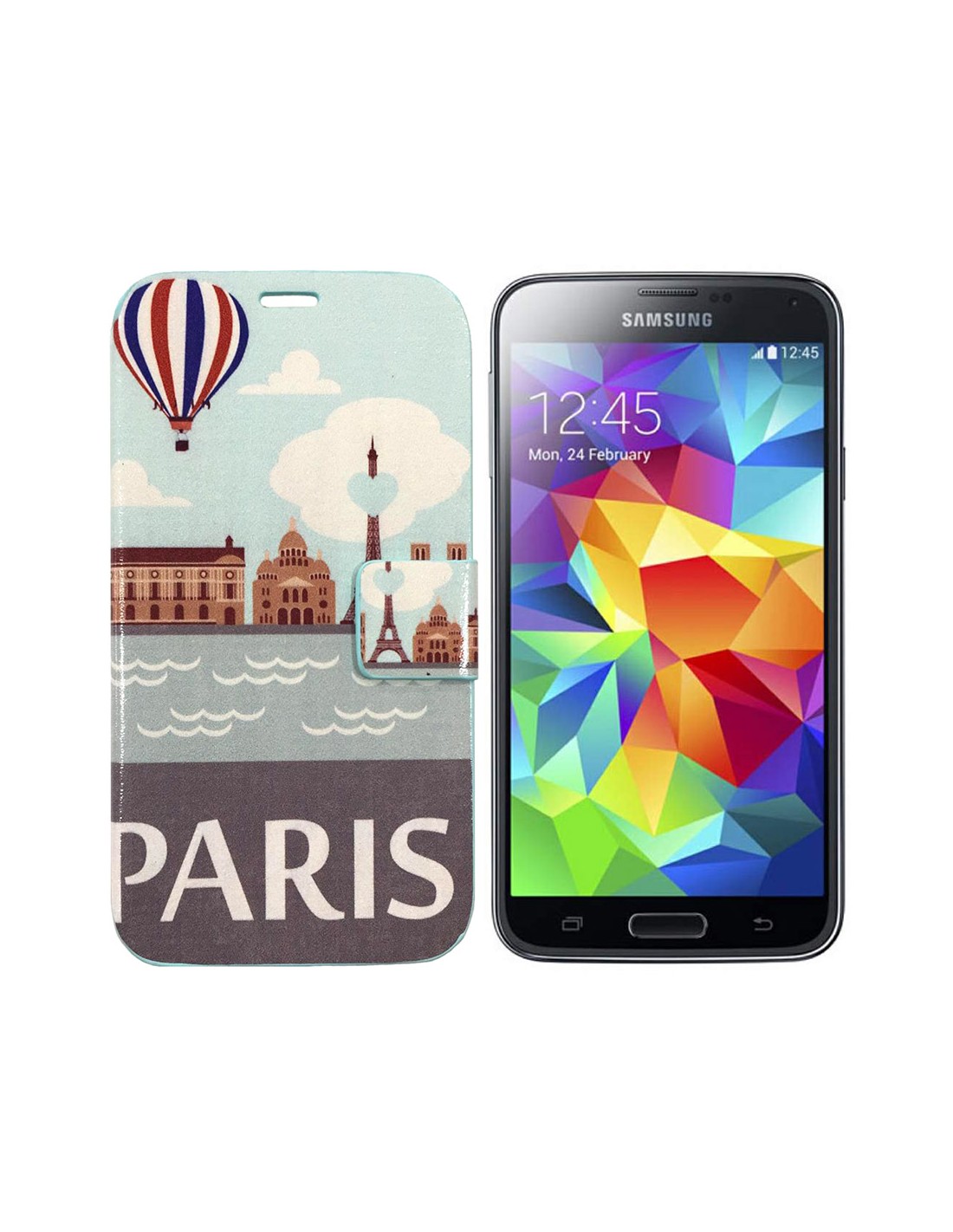 Funda libro cartera Samsung Galaxy S5 diseño Paris Celeste