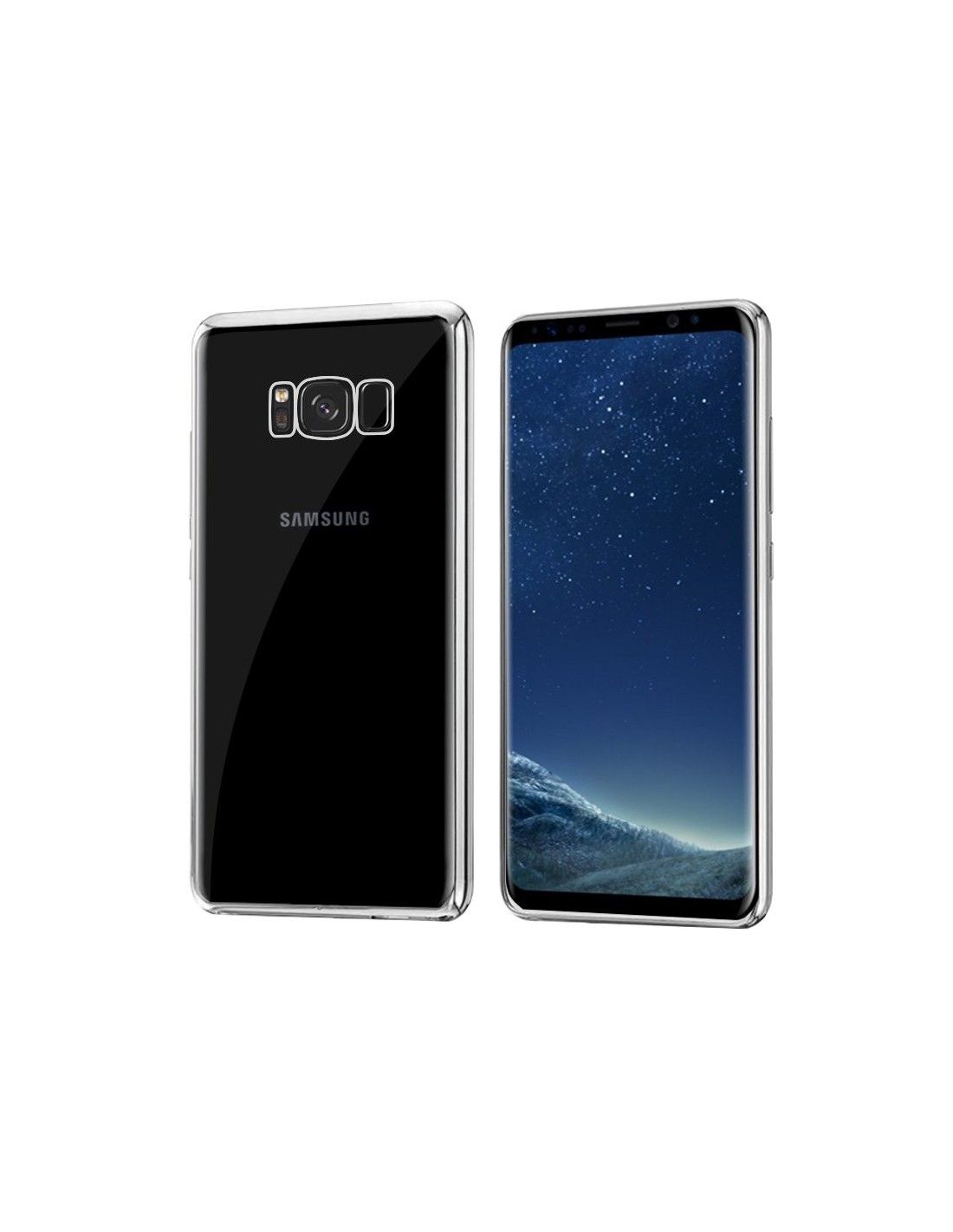 Carcasa TPU transparente Samsung G955 Galaxy S8 Plus borde metalizado plateado