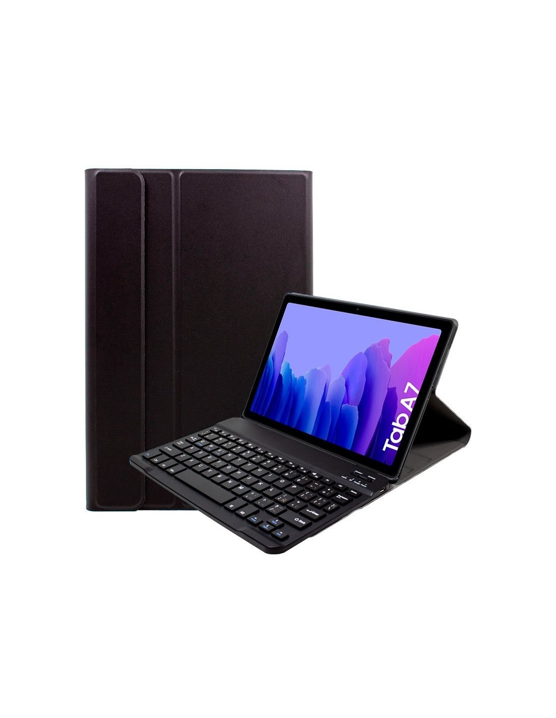 Funda con teclado Bluetooth para Samsung Galaxy Tab A7 T500 / T500 de 10.4", con cubierta plegable, cierre magnético y suave interior para proteger la pantalla. La Funda está realizada con polipiel suave de color negro muy agradable al tacto, con un excelente acabado interior que le ayudará a proteger su tablet de rayaduras y otros peligros como caídas, salpicaduras, arena, etc...
