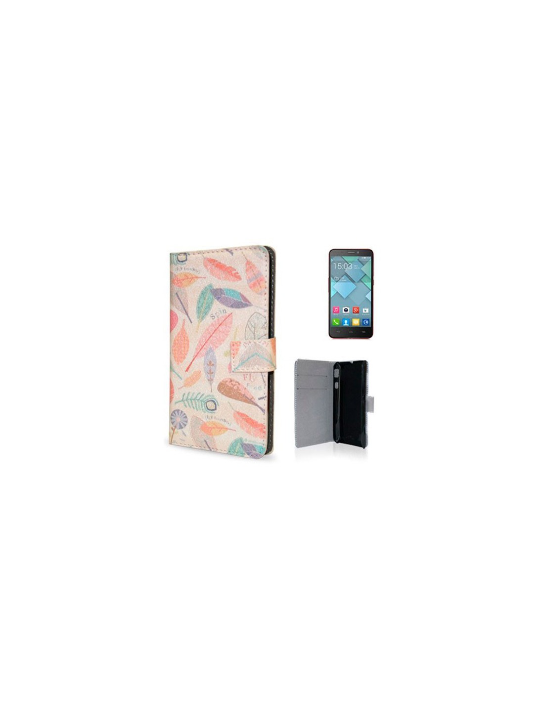 Funda libro cartera Alcatel Idol S diseño Spins (Hojas)