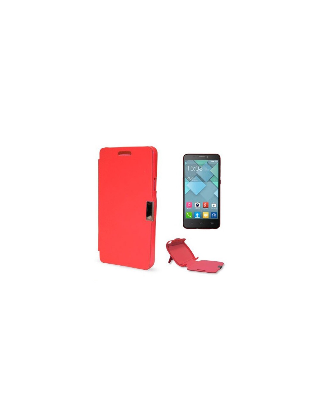 Funda libro imán soporte rígido Alcatel Idol S roja