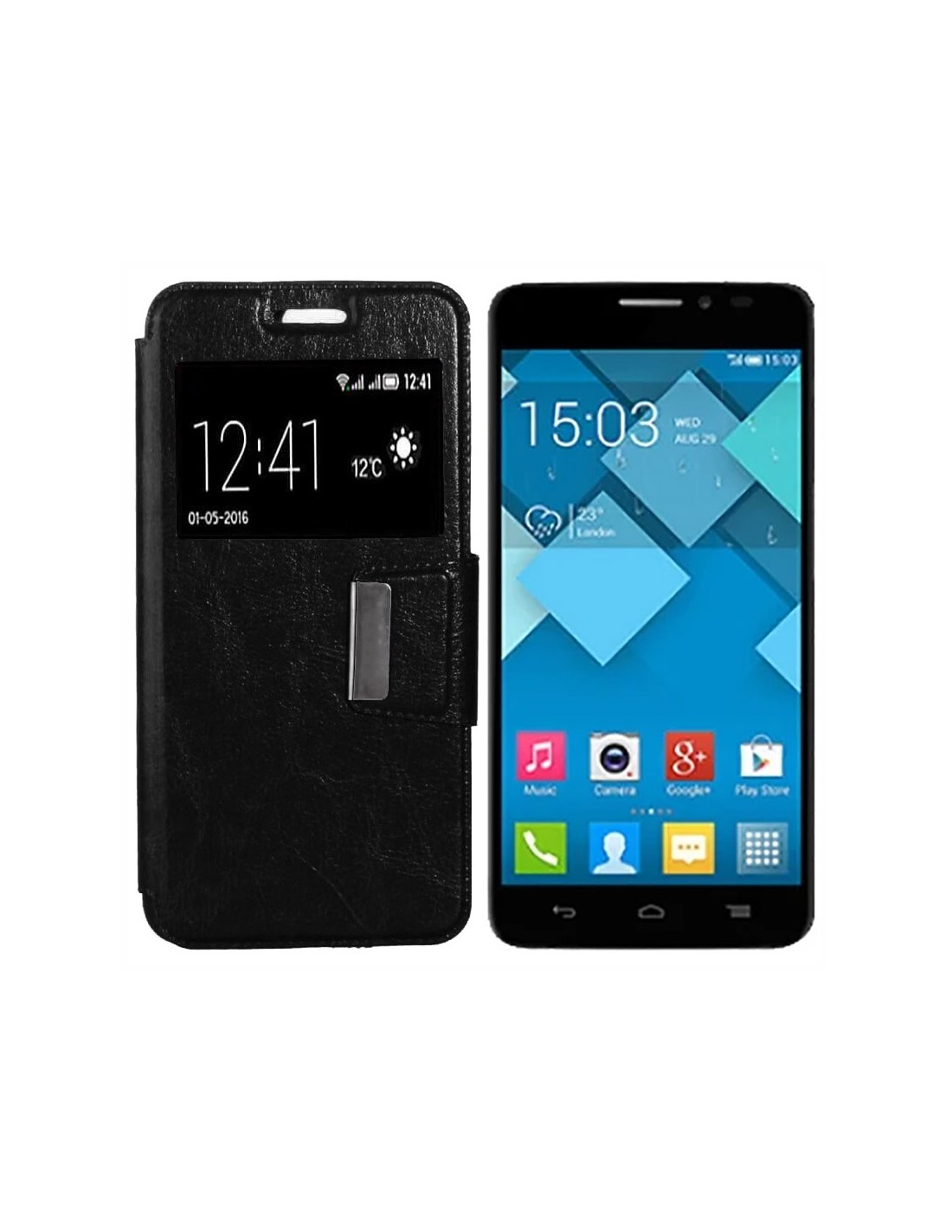 Funda libro soporte TPU Alcatel Idol X Plus negra