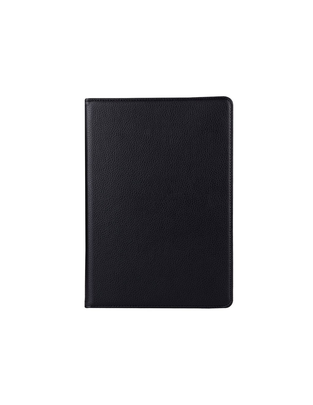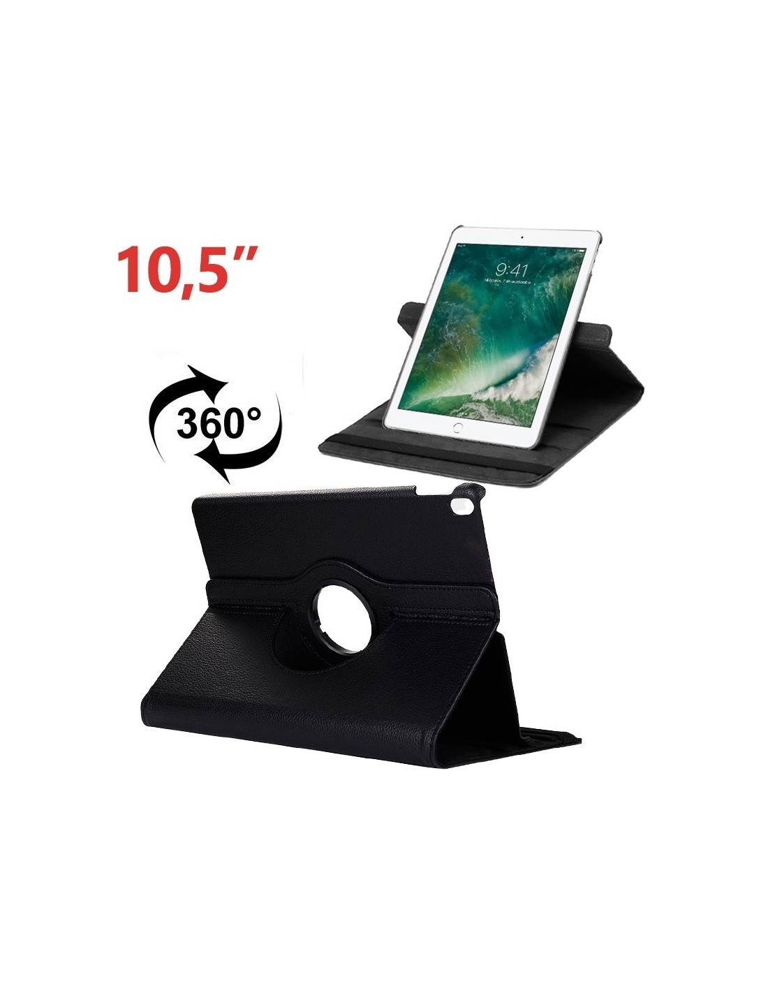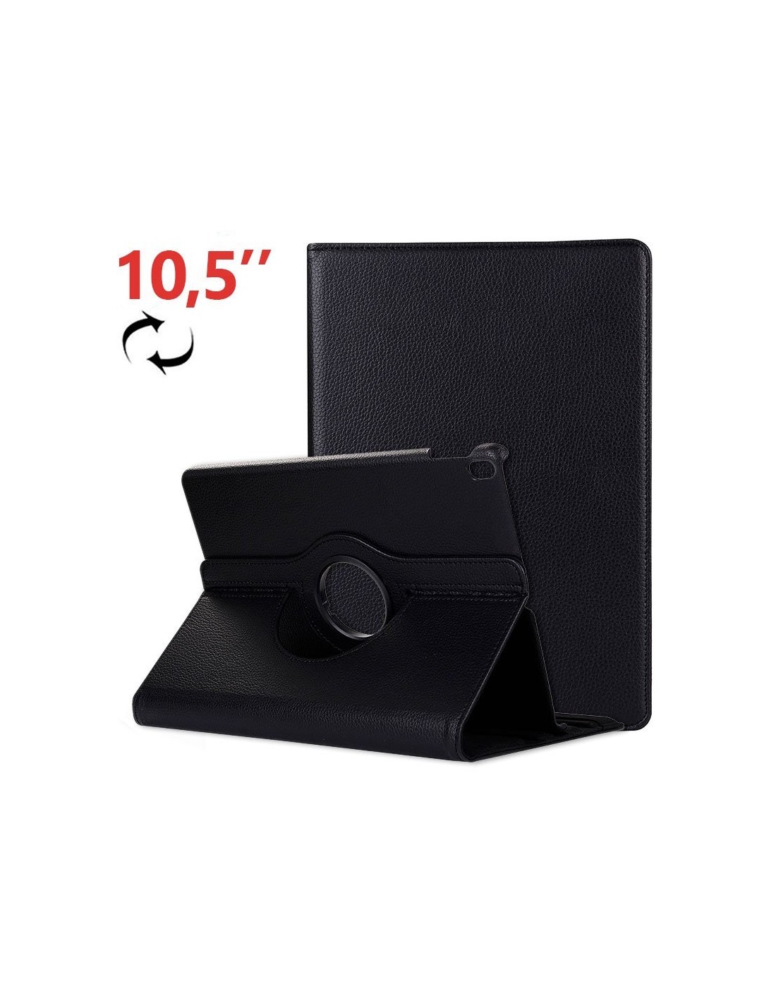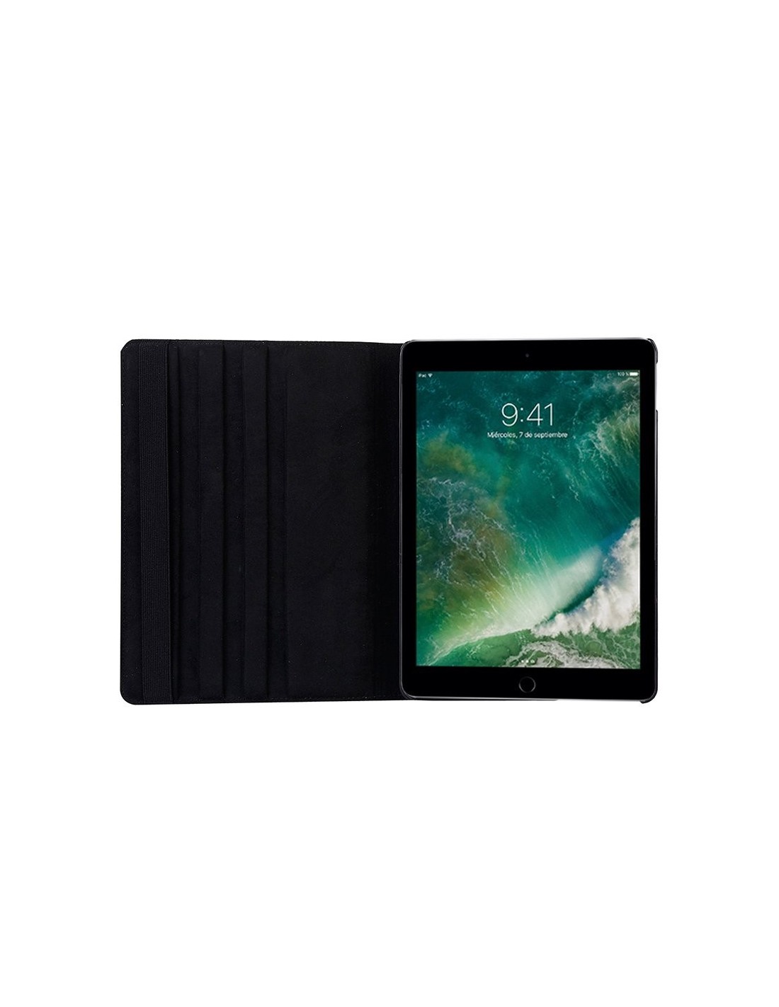 Material polipiel. Con su diseño giratorio, permite sostener el iPad en posición tanto horizontal como vertical. Presentada en caja-blister. Excelente calidad.