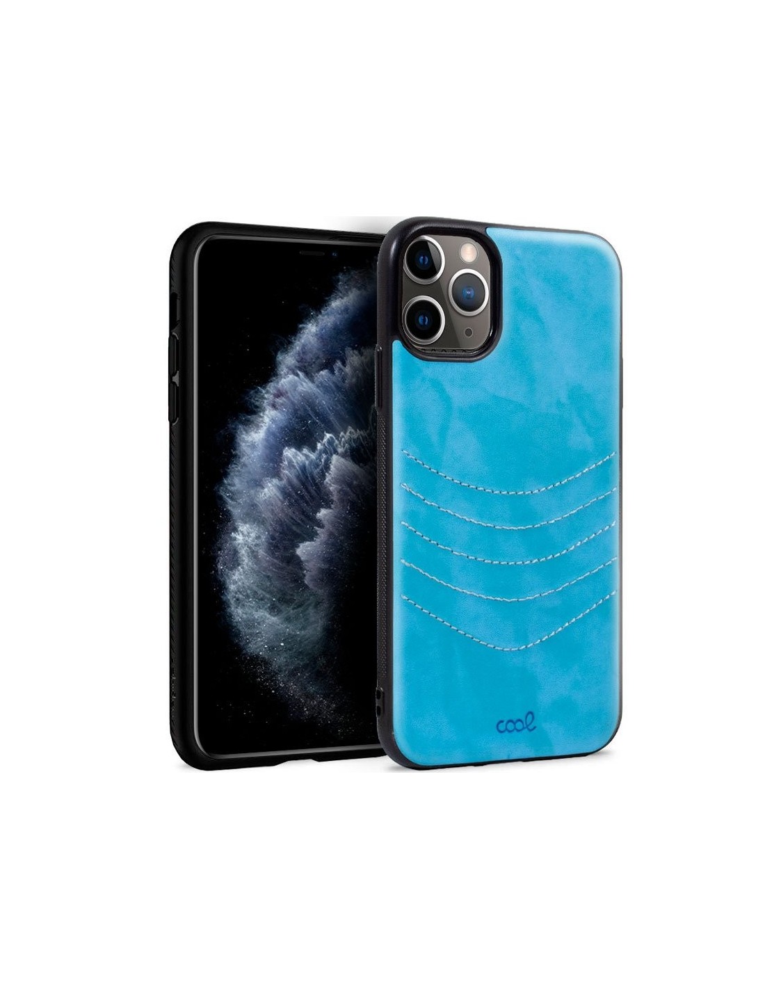 Carcasa TPU símil piel iPhone 11 Pro diseño bordado celeste