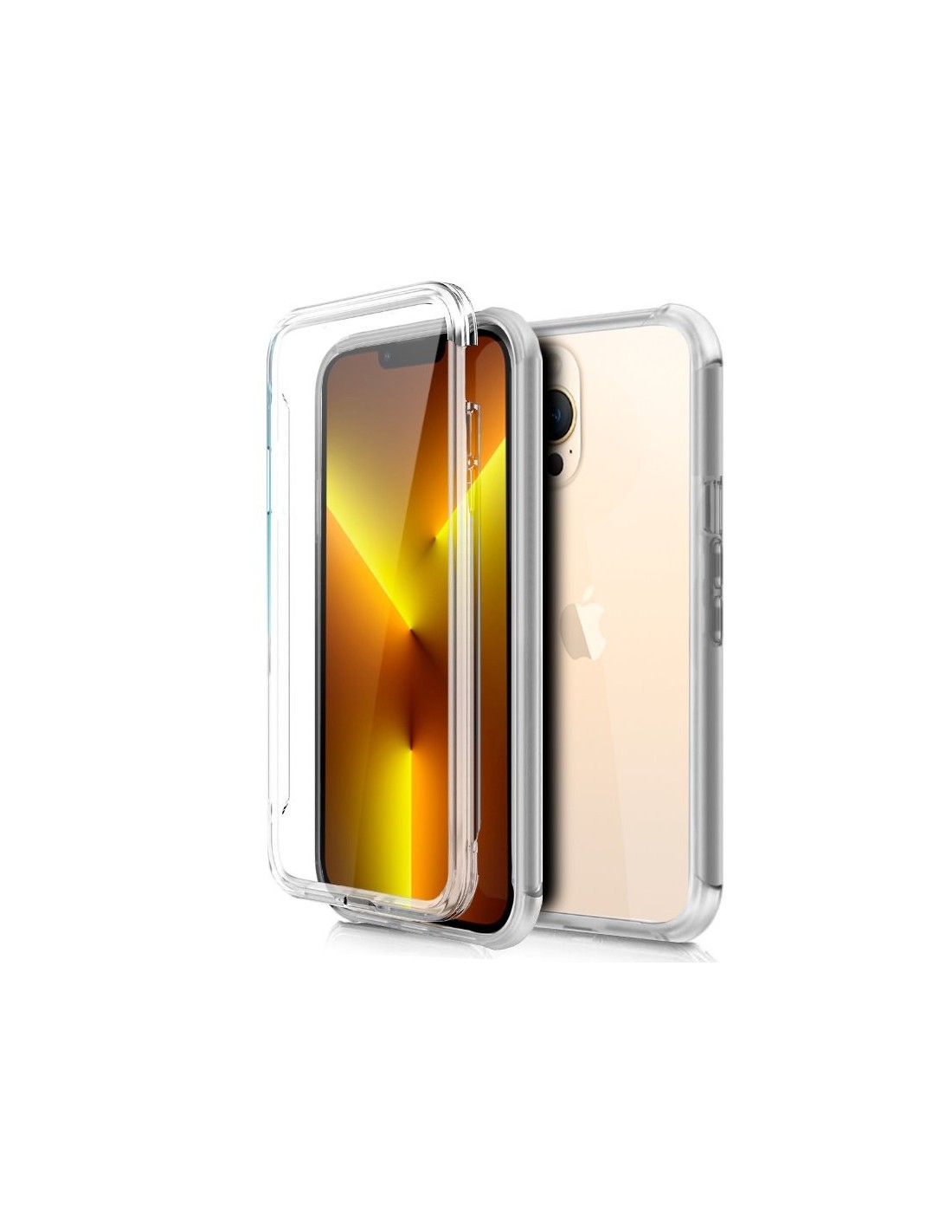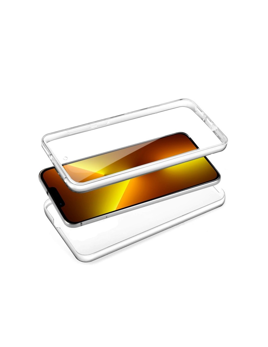 Funda resistente para móvil, de tipo transparente, silicona semirígida 360º, cubre parte frontal y trasera del smartphone.