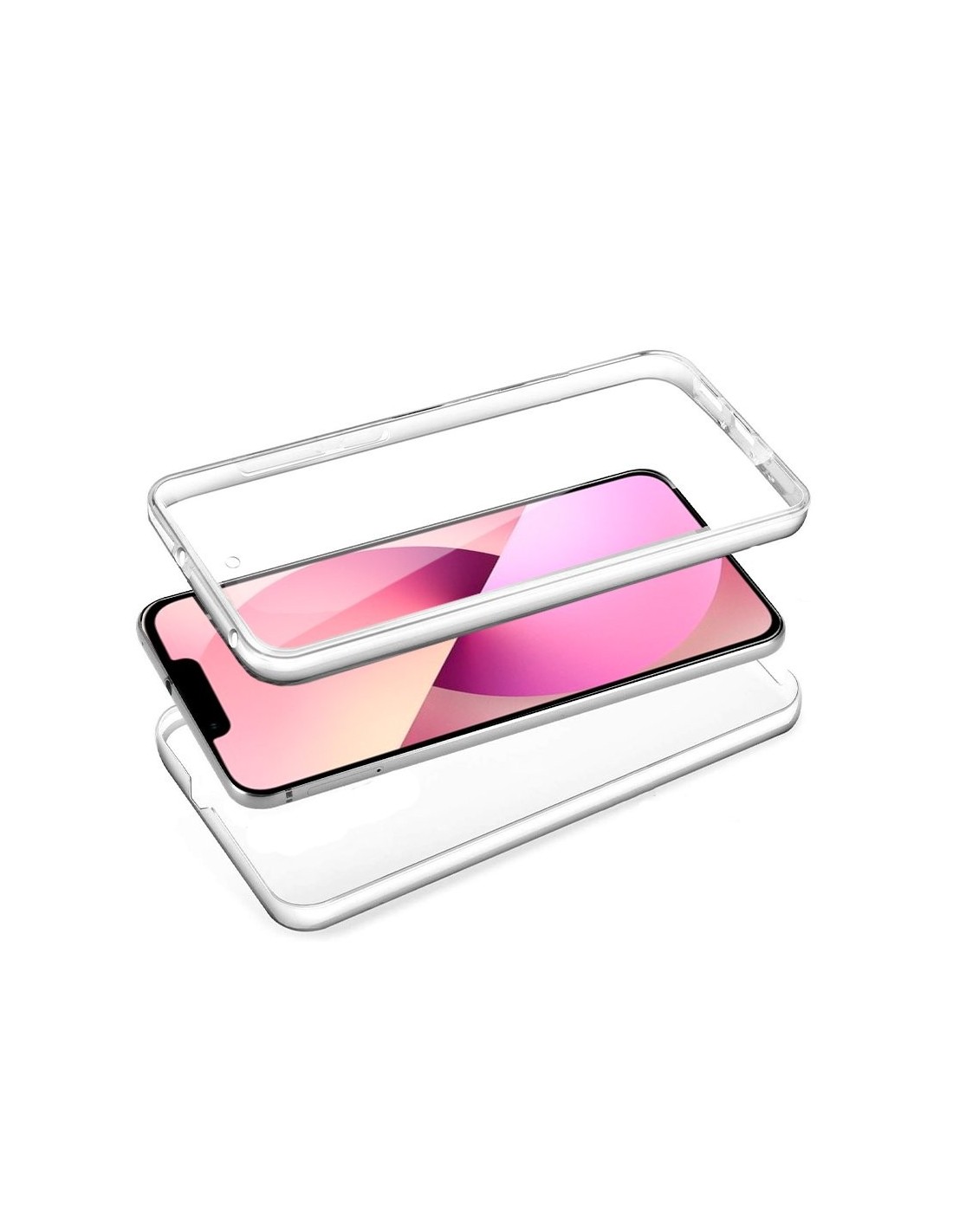 Funda resistente para móvil, de tipo transparente, silicona semirígida 360º, cubre parte frontal y trasera del smartphone.
