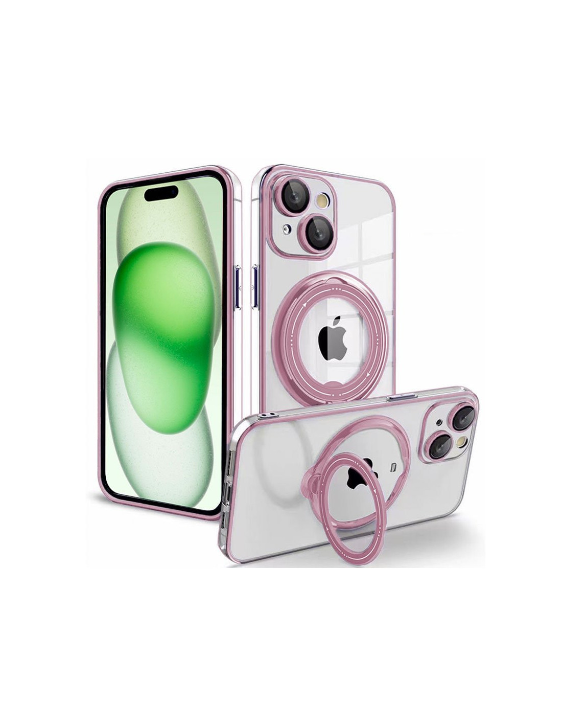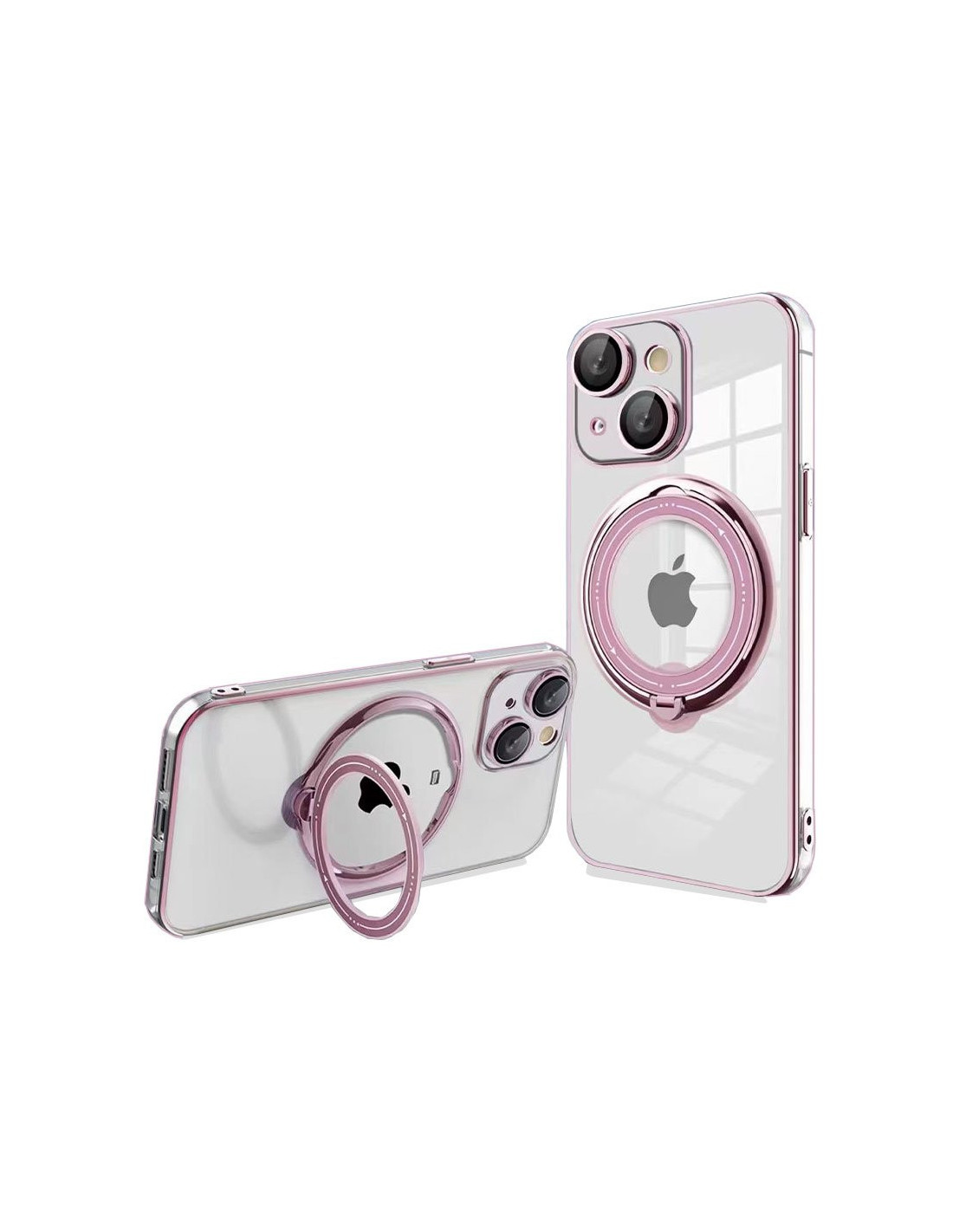 Carcasa TPU transparente iPhone 15 Plus magnética borde metalizado anilla rosa