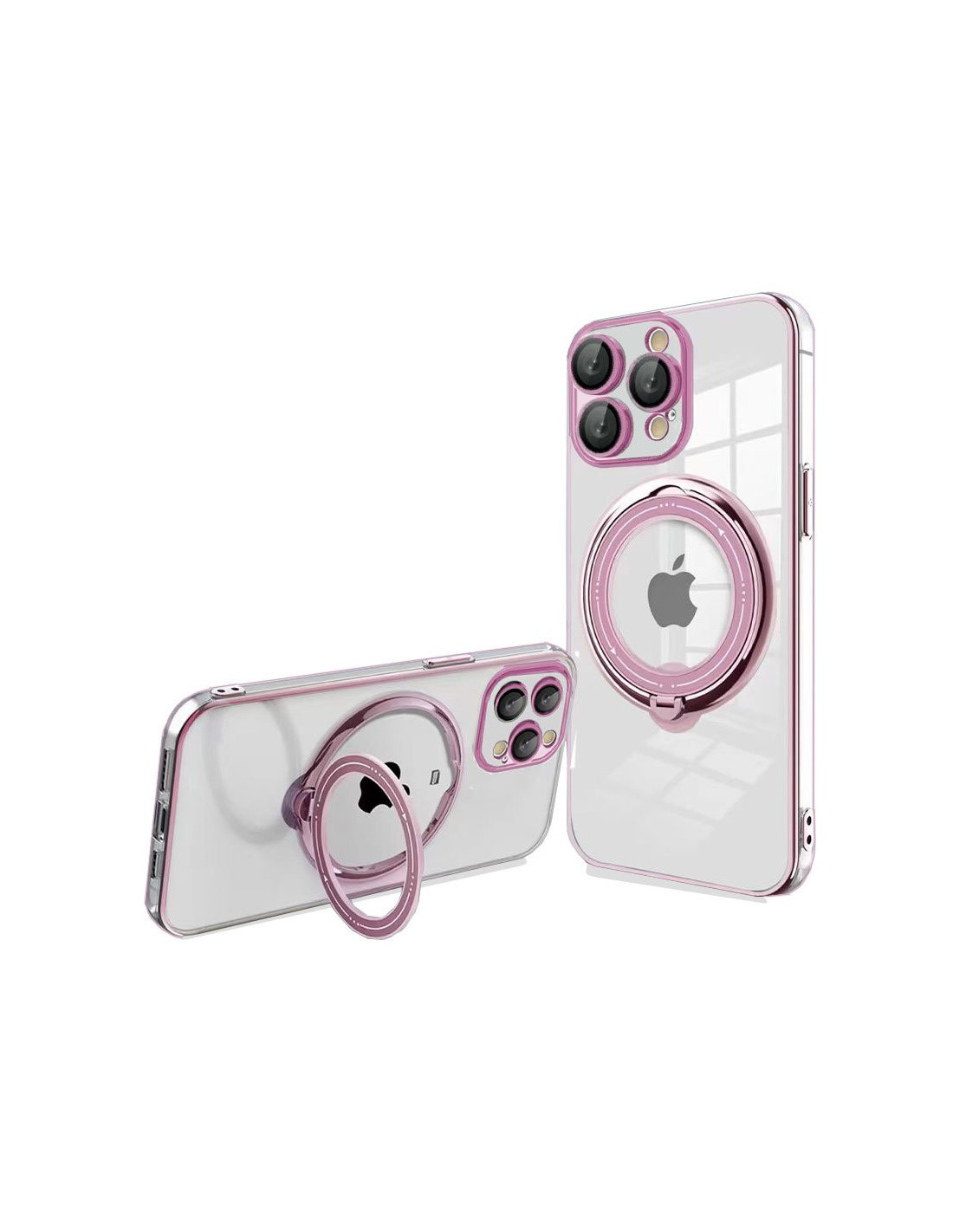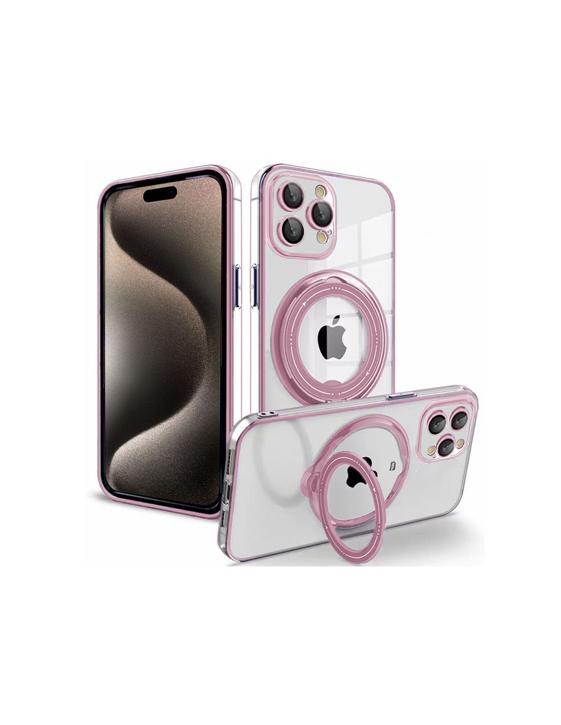 Carcasa TPU transparente iPhone 15 Pro Max magnética borde metalizado anilla rosa