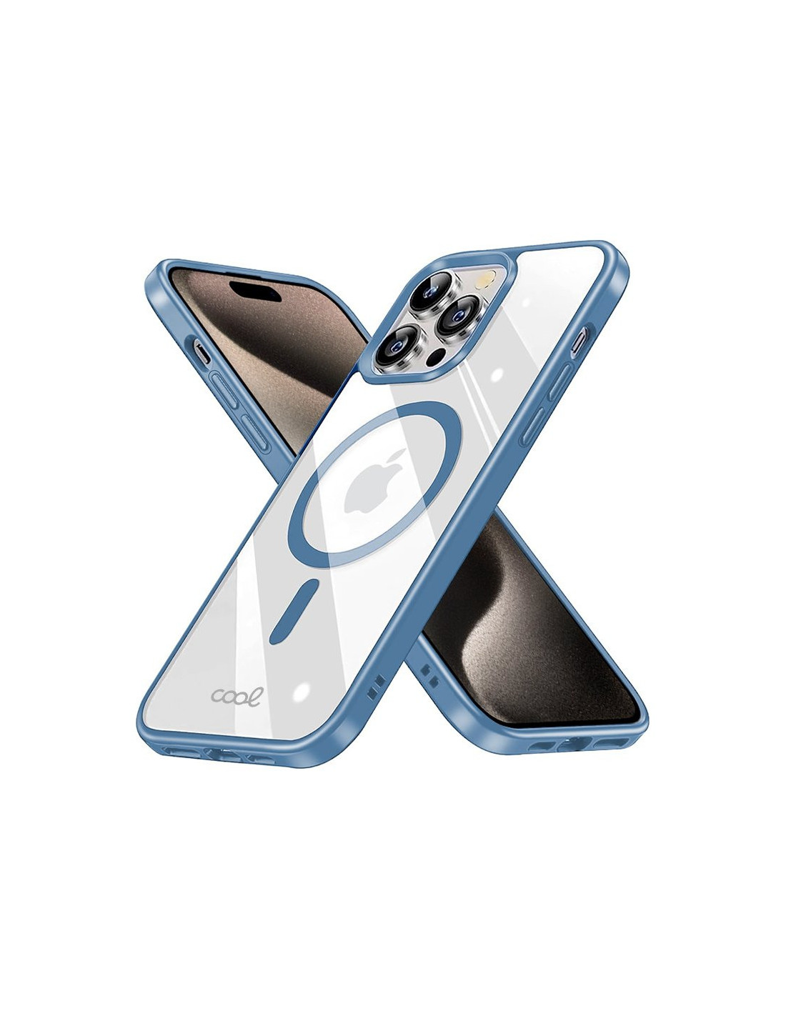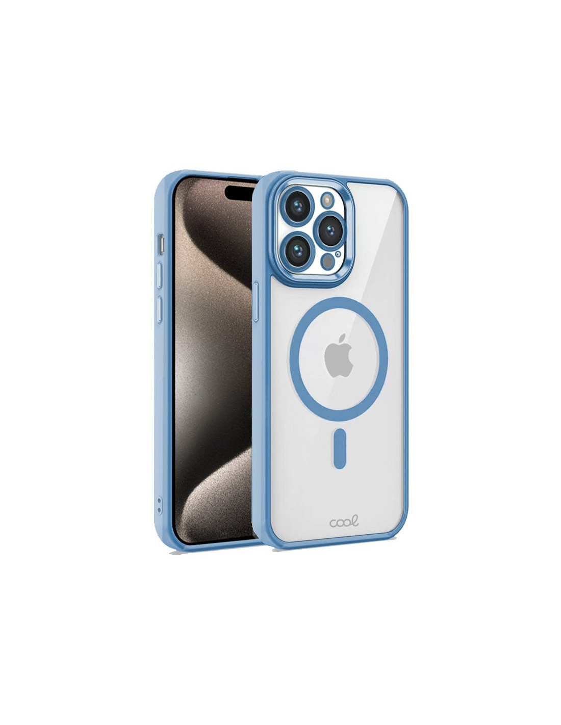 Carcasa TPU transparente iPhone 15 Pro Max magnética borde celeste