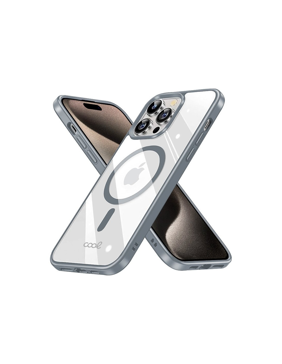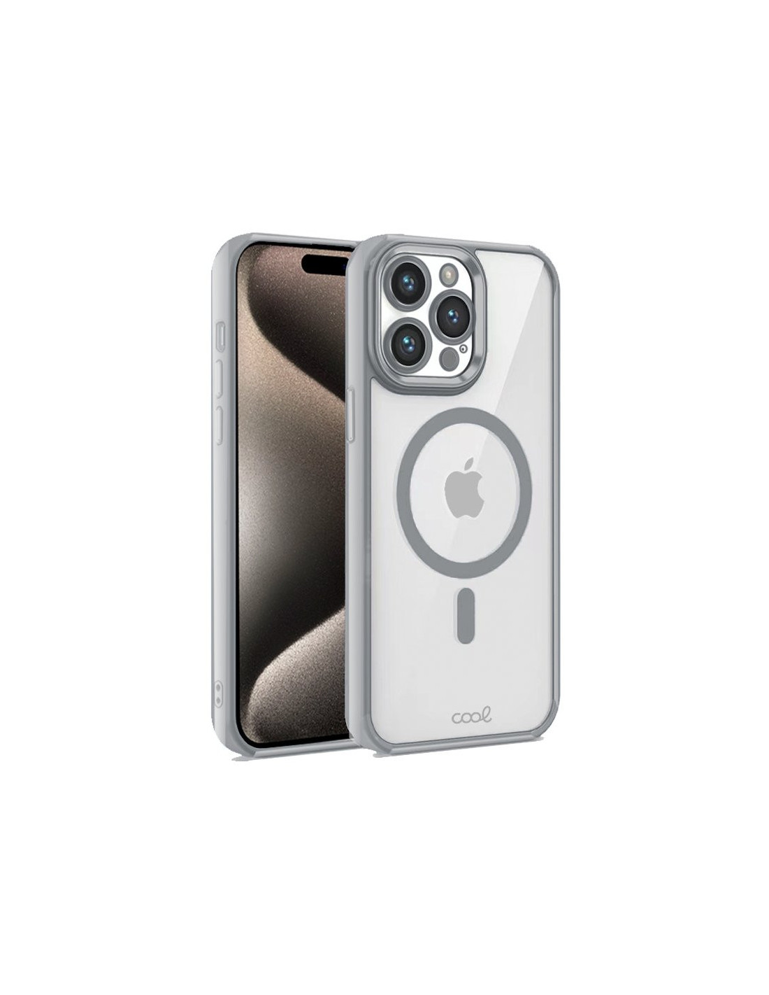 Carcasa TPU transparente iPhone 15 Pro Max magnética borde plata