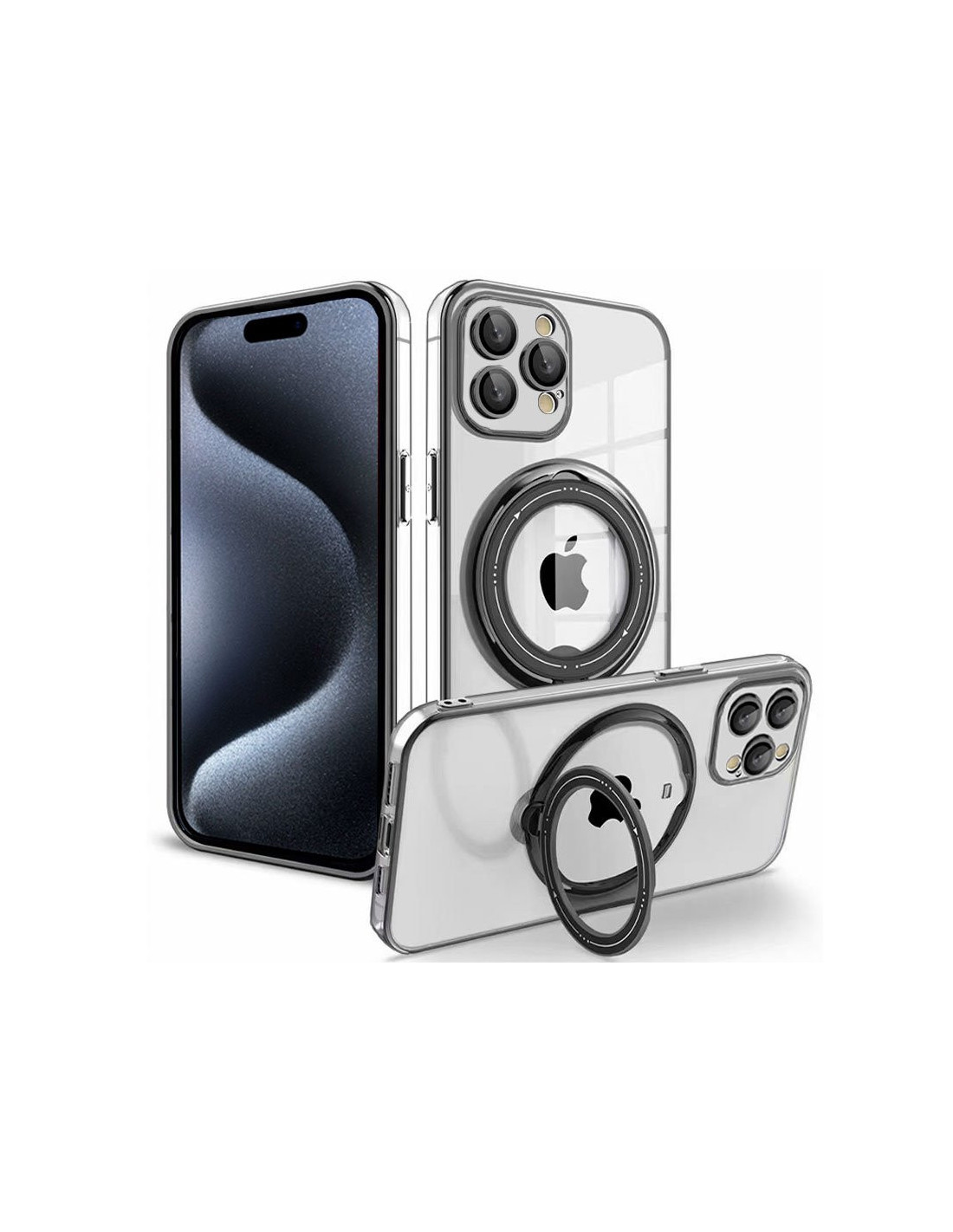 Carcasa TPU transparente iPhone 15 Pro magnética borde metalizado anilla negra