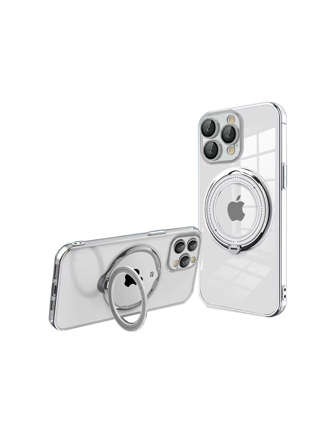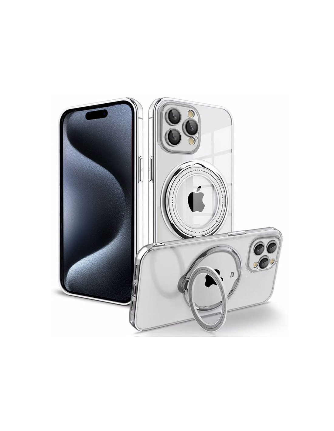 Carcasa TPU transparente iPhone 15 Pro magnética borde metalizado anilla plata