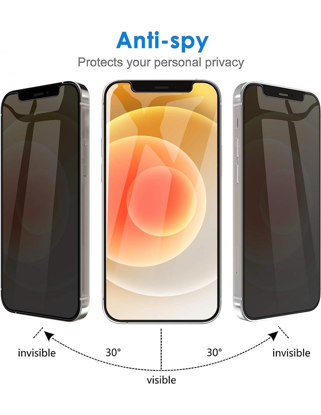 Protector de pantalla de vidrio templado con privacidad aumentada para iPhone 15 Pro.