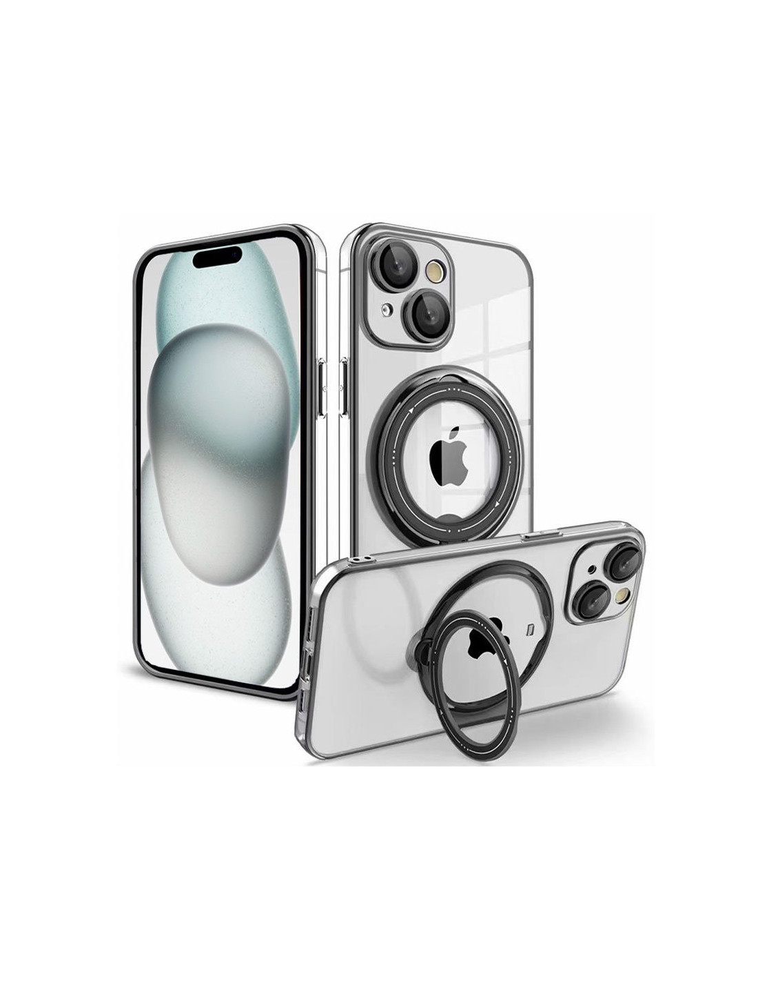 Carcasa TPU transparente iPhone 15 magnética borde metalizado anilla negra