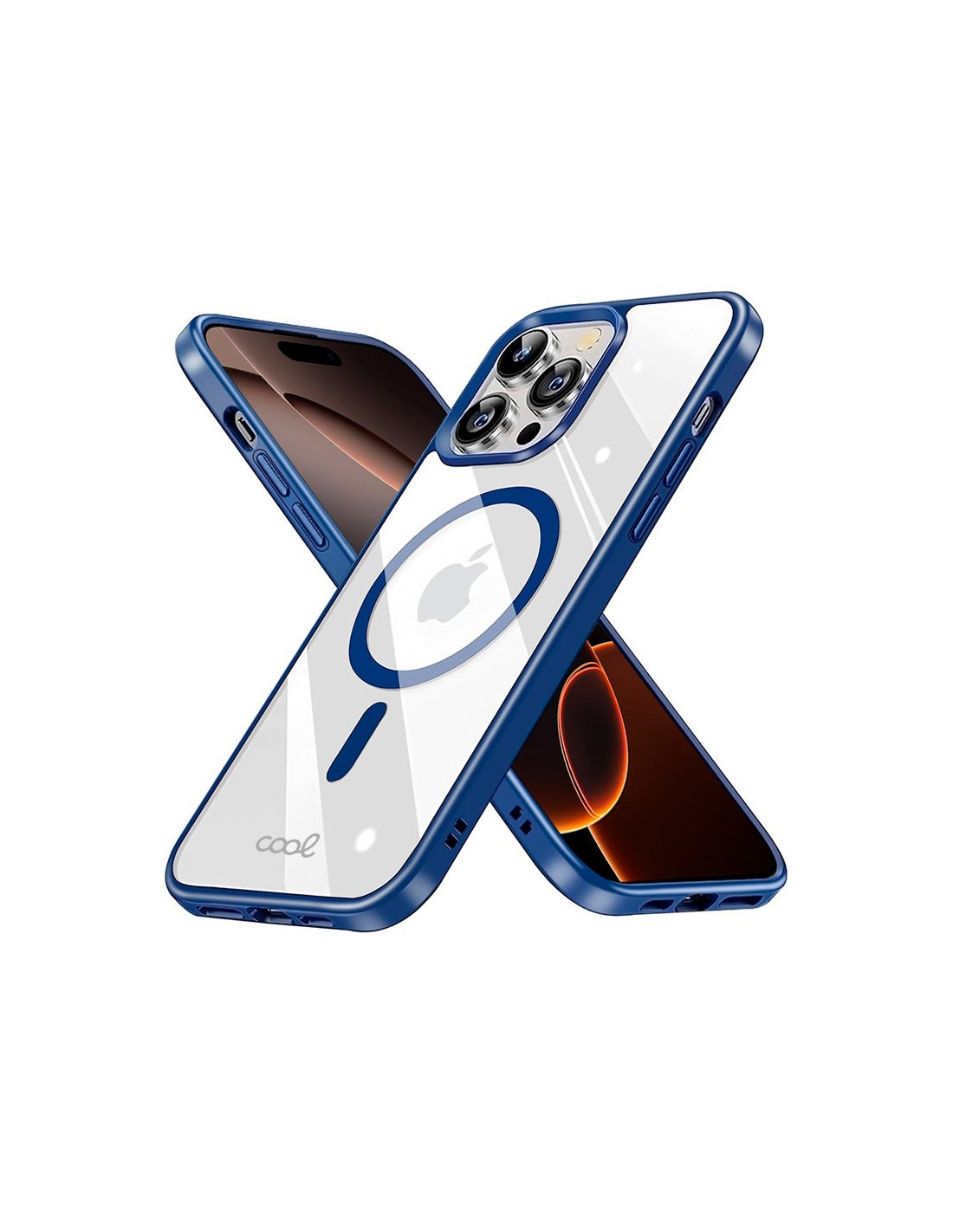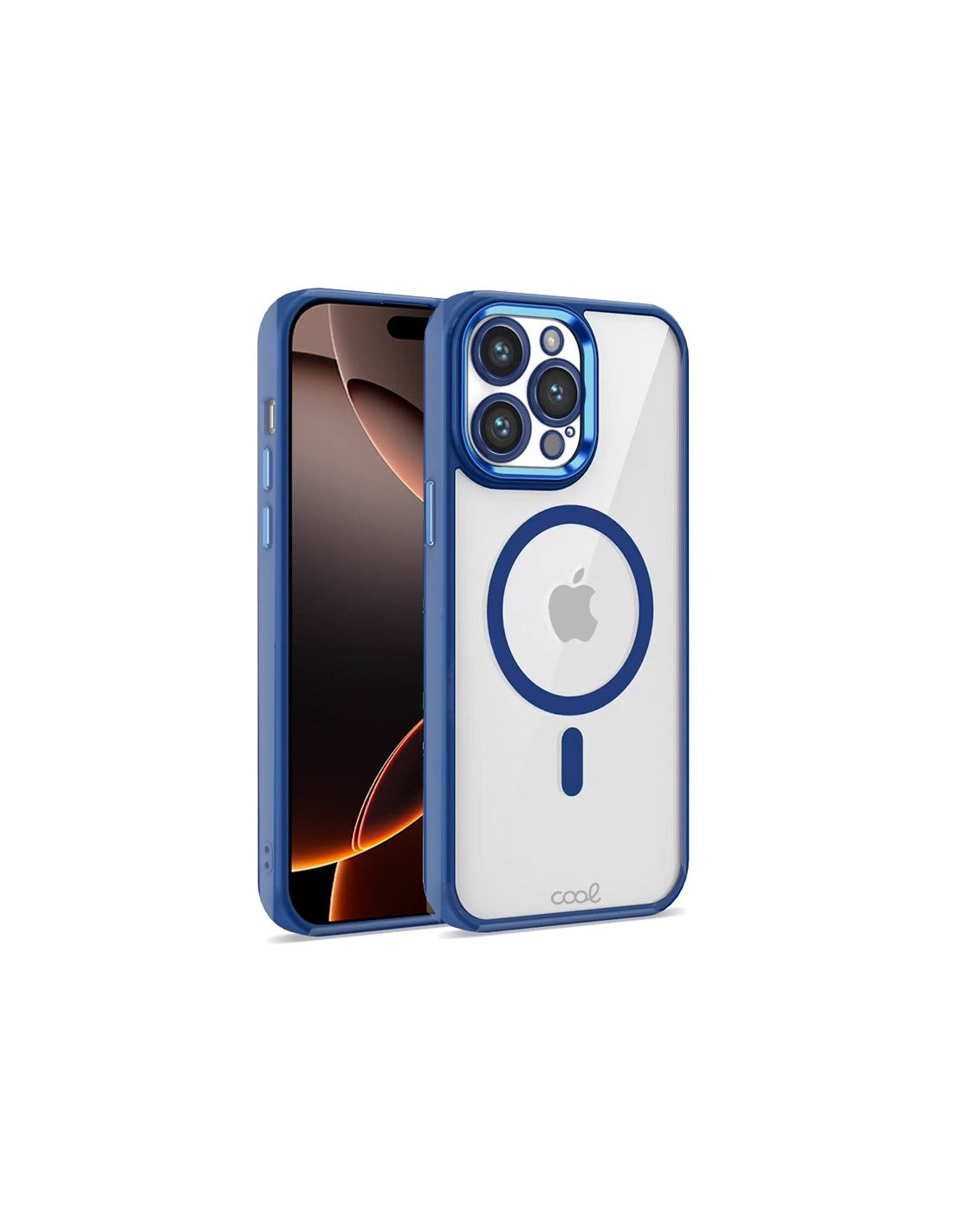 Carcasa TPU transparente iPhone 16 Pro Max magnética borde azul marino