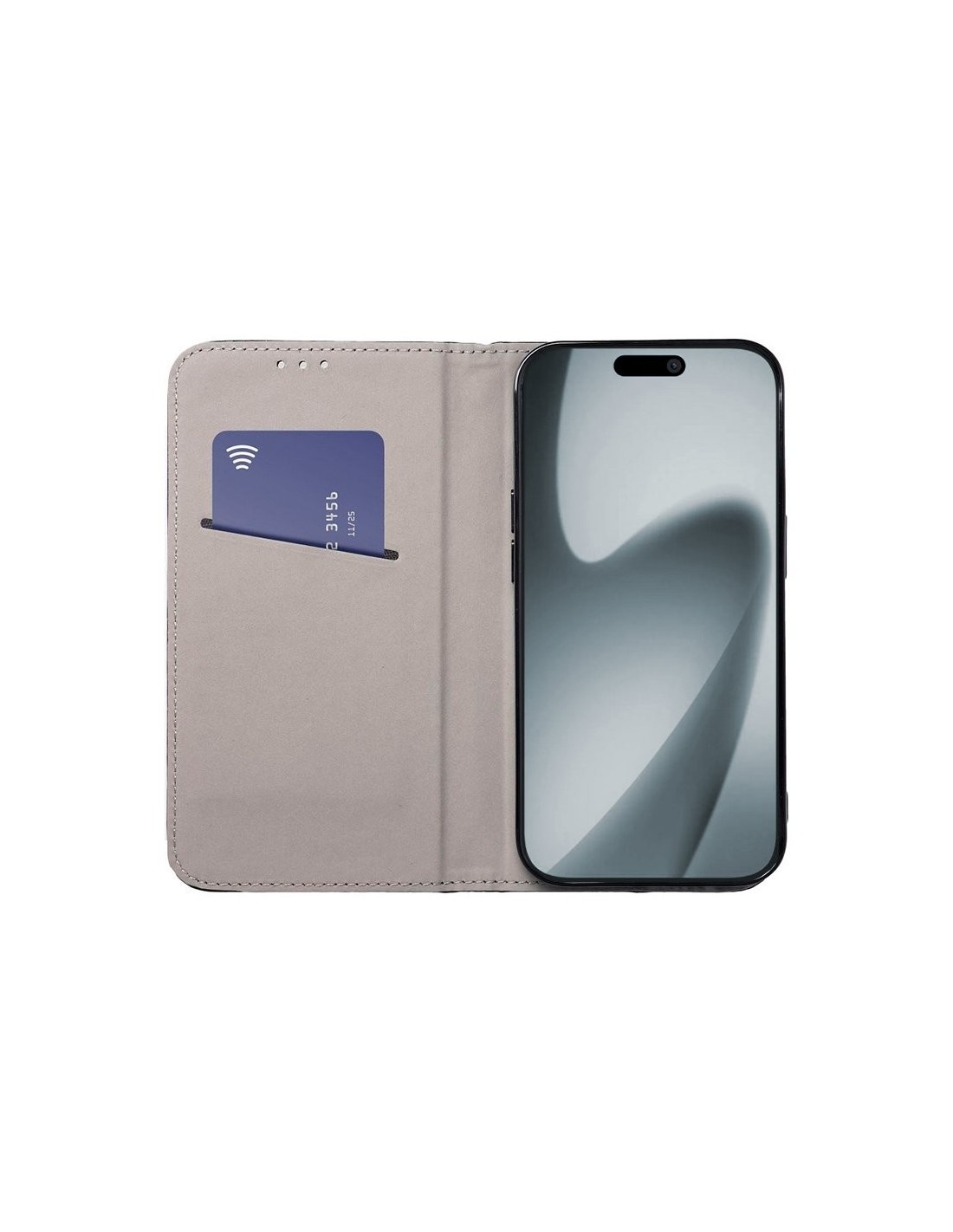 Apertura lateral tipo libro. Incorpora una carcasa en el interior de gel TPU específica del modelo indicado, en la que se encaja el móvil y queda perfectamente sujeto y protegido.