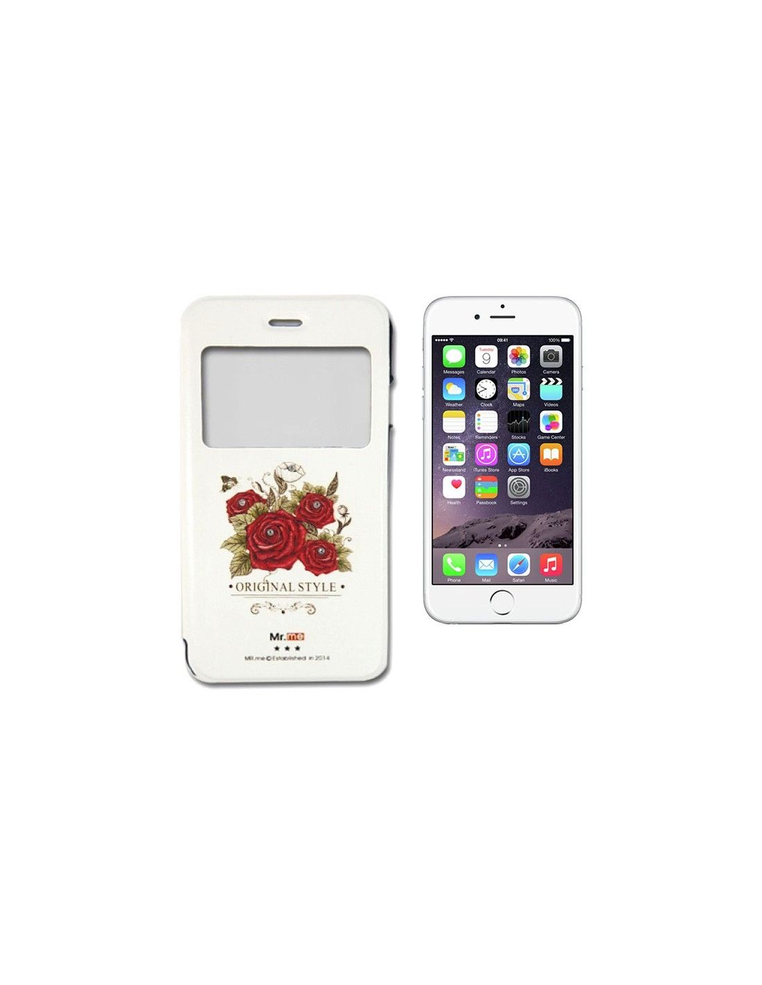 Funda libro iPhone 6 / 6S diseño Mr. Me rosas brillantes