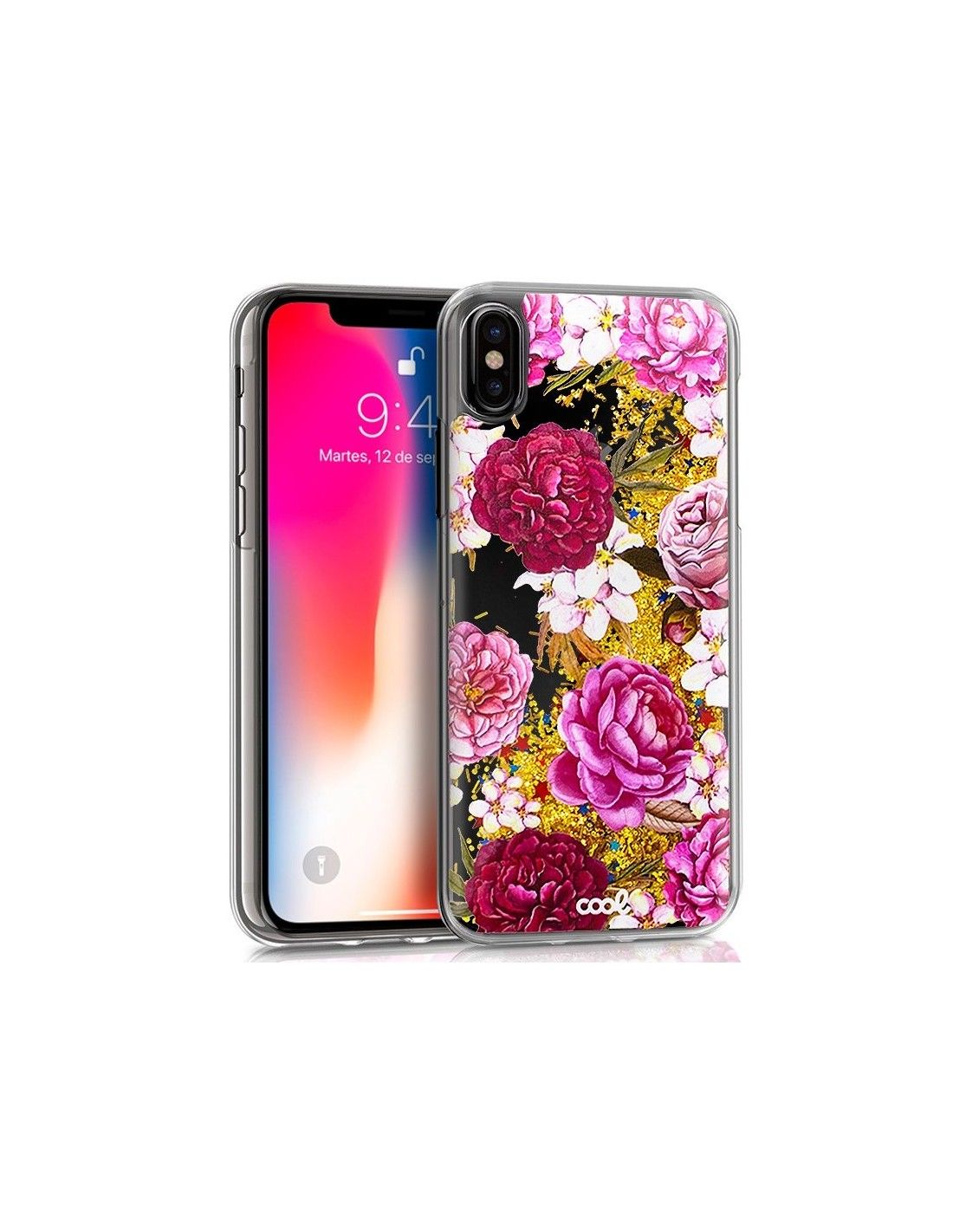 Carcasa TPU gel purpurina iPhone X / XS Glitter dorado diseño Flores