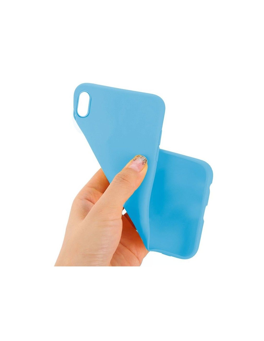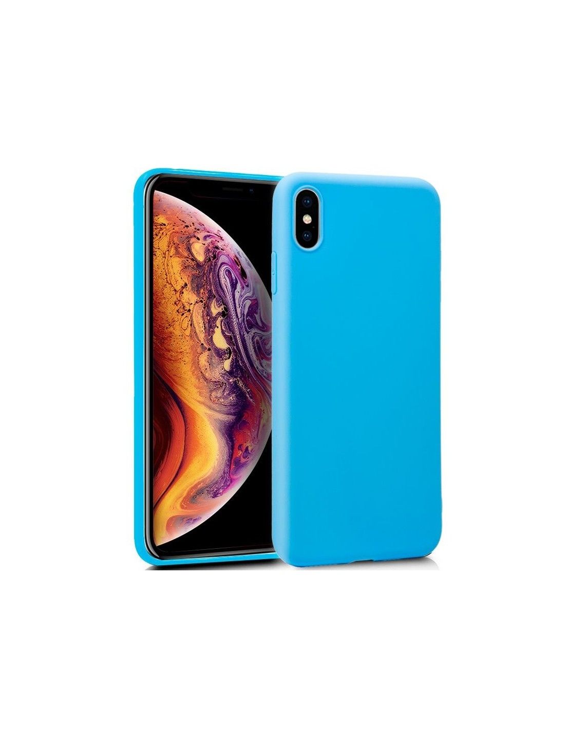 Funda silicona iPhone XS Max de color celeste.