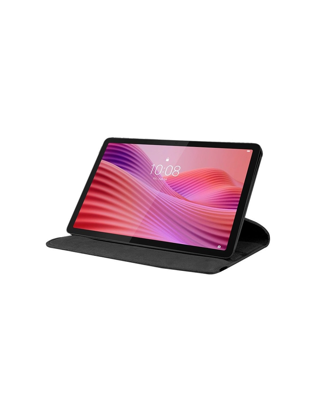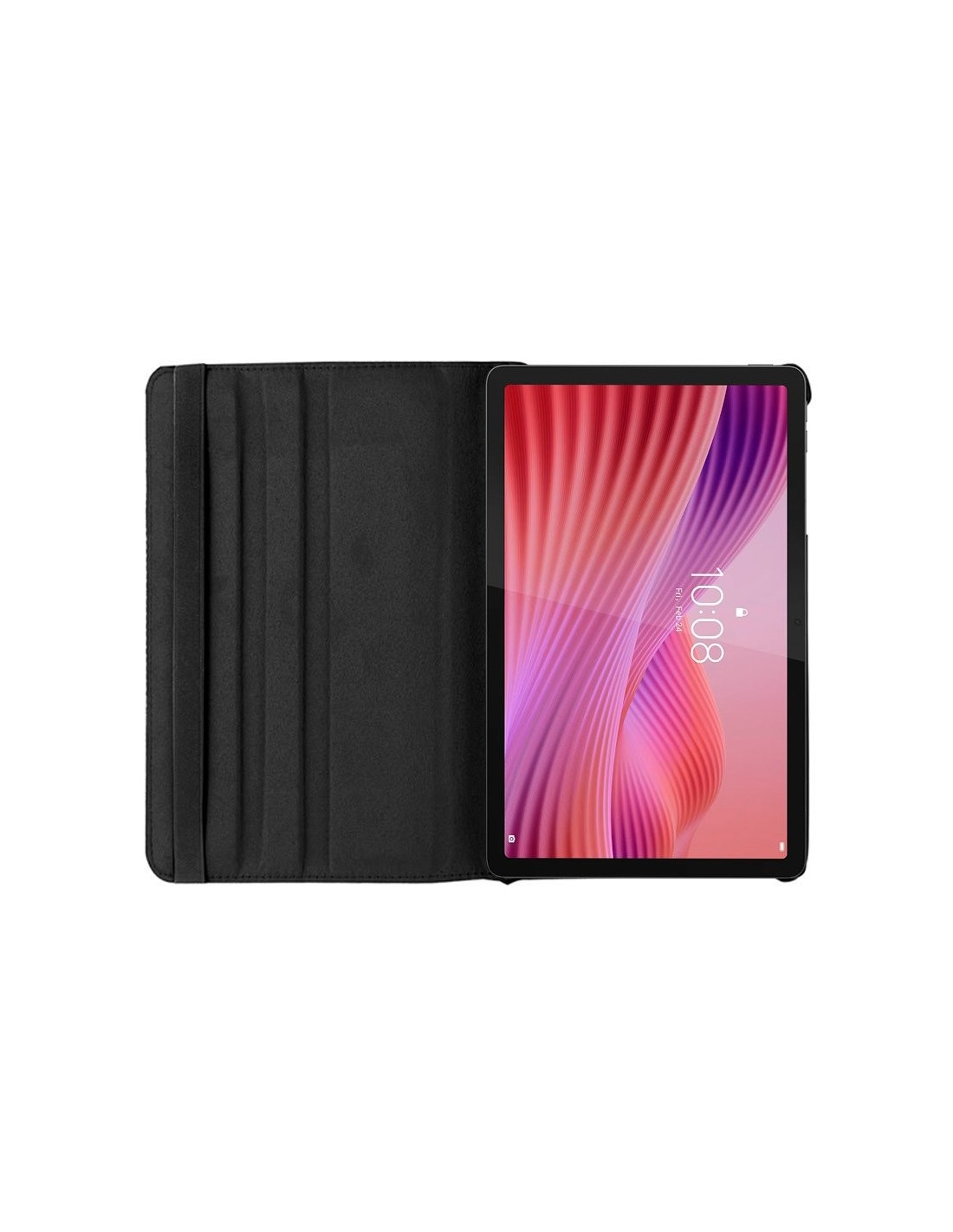 Material polipiel. Con su diseño giratorio, permite sostener la tablet en posición tanto horizontal como vertical. Presentada en caja-blister. Excelente calidad.