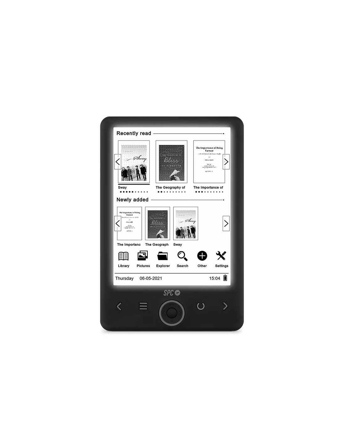 El lector de libros electrónicos de SPC te da la posibilidad de leer tu libro favorito en cualquier posición. Si te resulta más fácil, puedes leerlo de la manera clásica, con el ereader en posición vertical. Pero si se ajusta más a tus necesidades leerlo en posición horizontal, con SPC DICKENS LIGHT 2 también puedes hacerlo. Gira tu dispositivo 90º y a seguir disfrutando de una entretenida lectura.