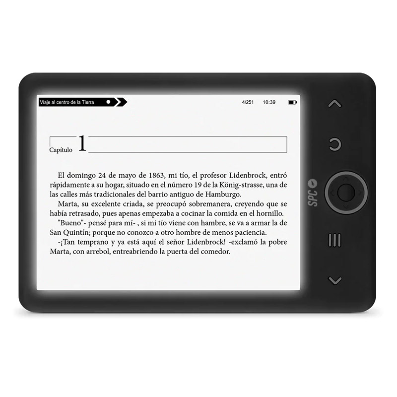 El ereader SPC DICKENS LIGHT 2 incorpora opciones y funcionalidades especialmente diseñadas para facilitar la lectura. En una búsqueda continua del Easy Reading, este lector de libros electrónico incluye luz en pantalla que puedes encender o apagar. No solo eso, ¡aún hay más! También podrás cambiar el brillo de la pantalla para conseguir ese confort en la lectura que estás buscando.