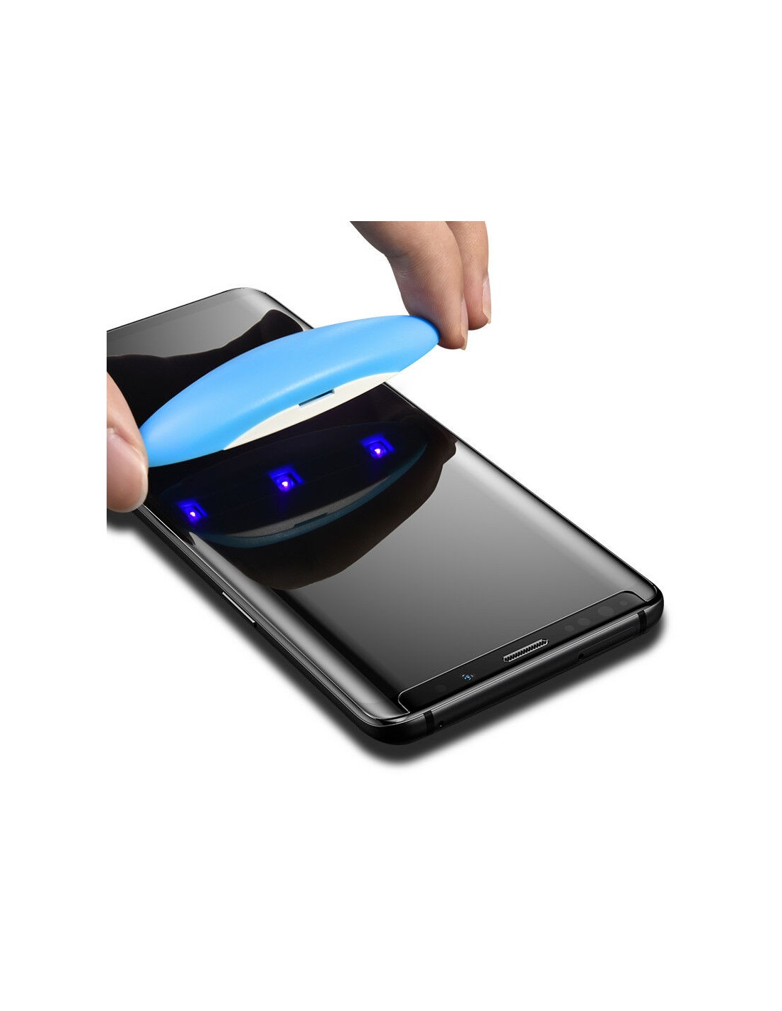 Cristal curvo 3D con adhesivo UV: Cubre y se adhiere al 100% de la pantalla gracias a su pegamento activado por luz ultravioleta.