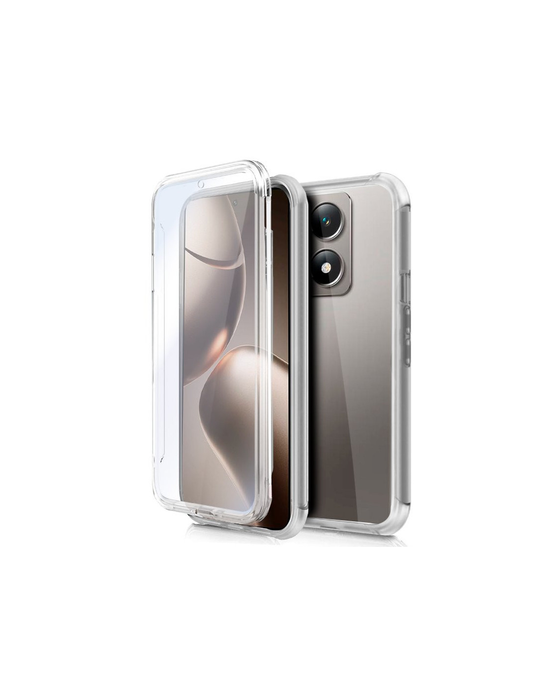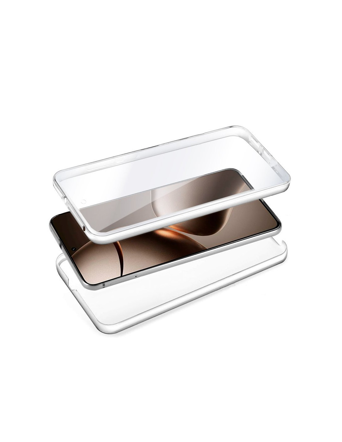 Funda resistente para móvil, de tipo transparente, silicona semirígida 360º, cubre parte frontal y trasera del smartphone.