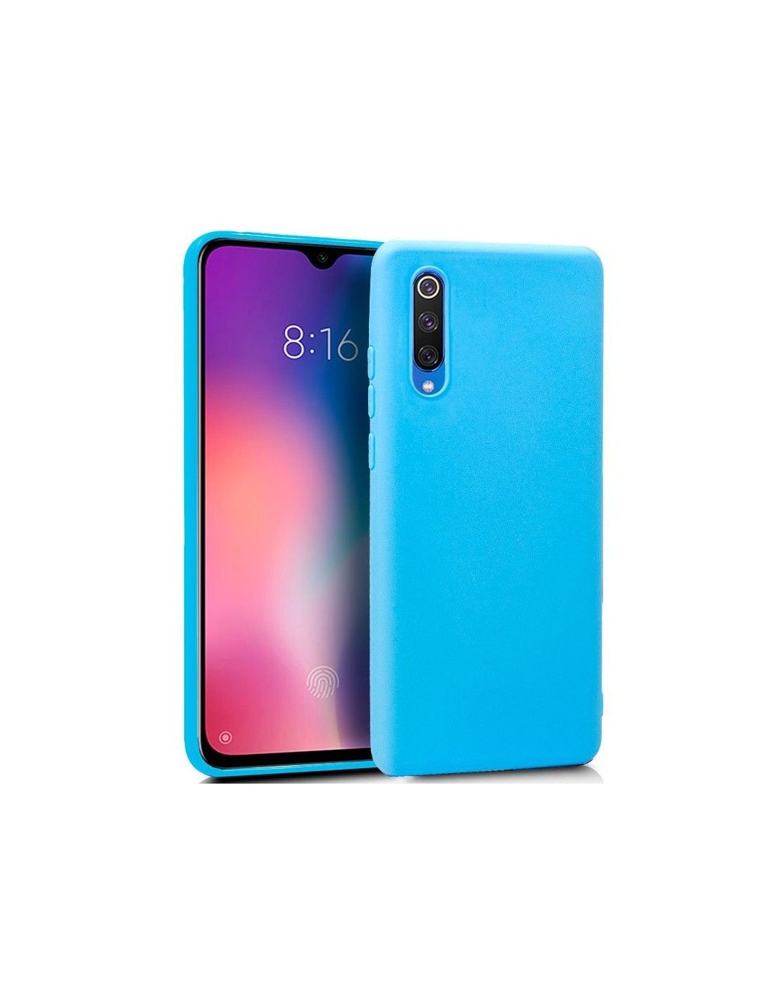 Funda silicona Xiaomi Mi 9 SE de color celeste.