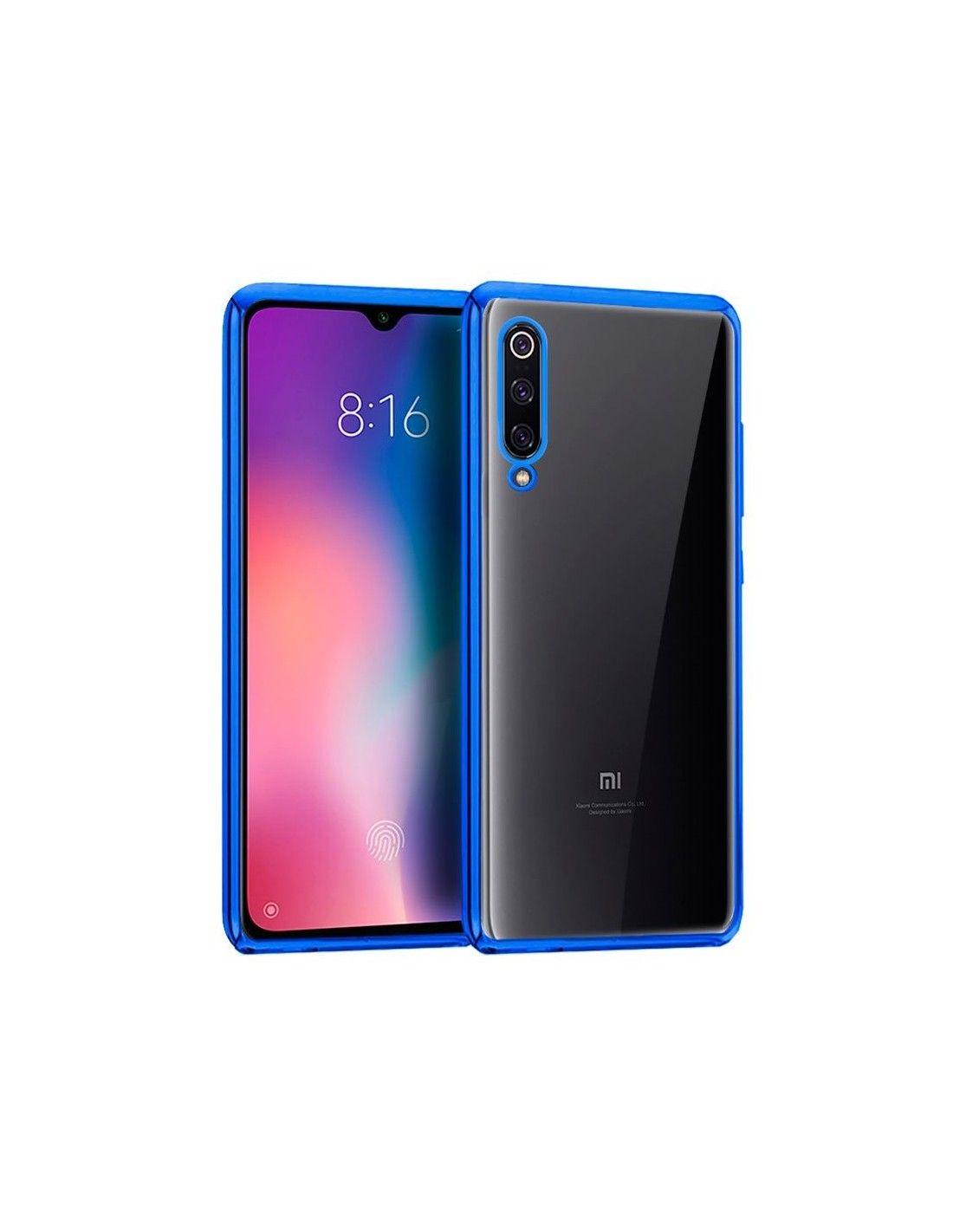 Carcasa TPU transparente Xiaomi Mi 9 borde metalizado azul