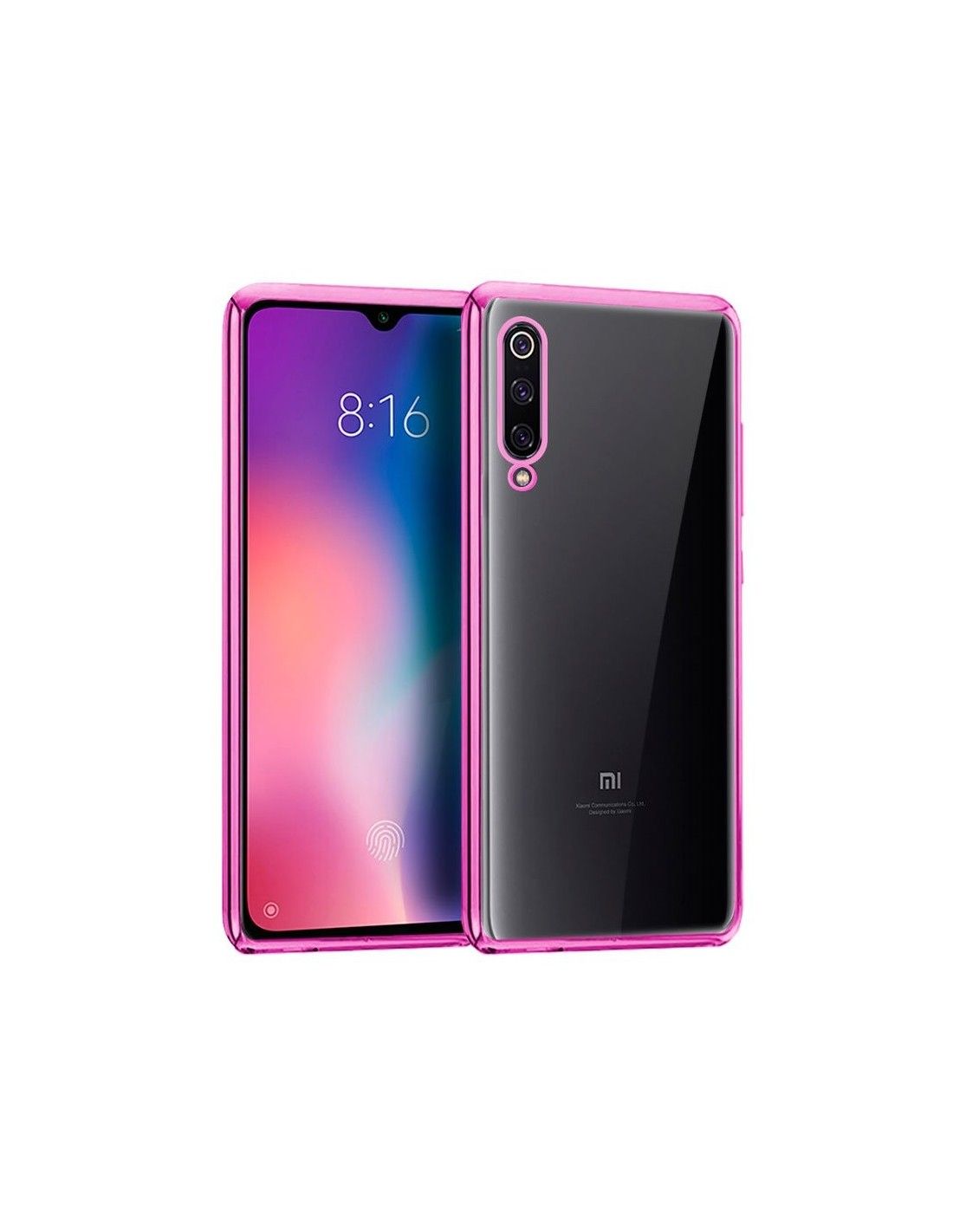 Carcasa TPU transparente Xiaomi Mi 9 borde metalizado rosa