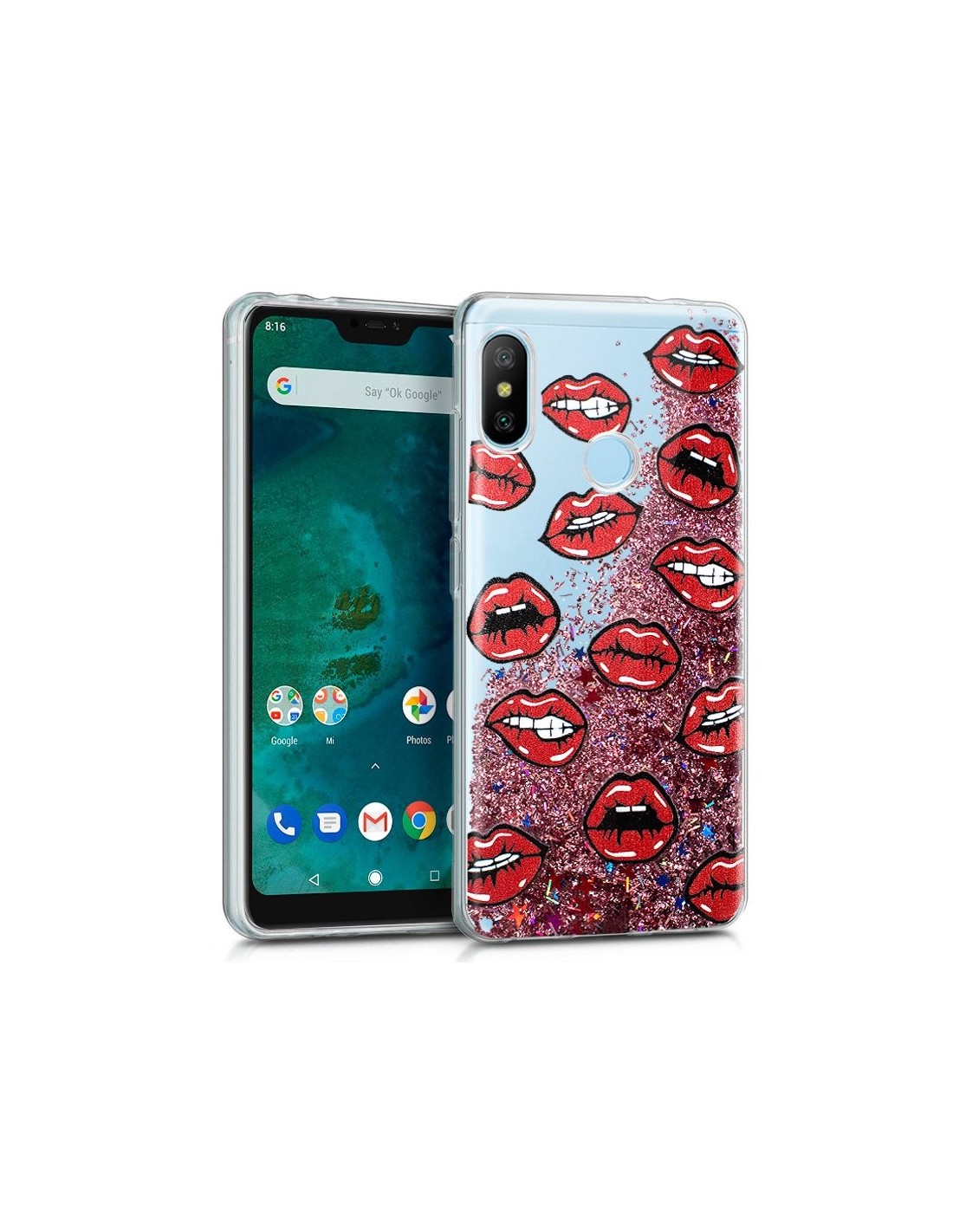Carcasa TPU gel purpurina Xiaomi Mi A2 Lite / 6 Pro diseño Kiss