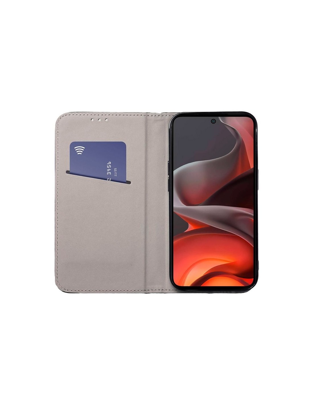 Apertura lateral tipo libro. Incorpora una carcasa en el interior de gel TPU específica del modelo indicado, en la que se encaja el móvil y queda perfectamente sujeto y protegido.