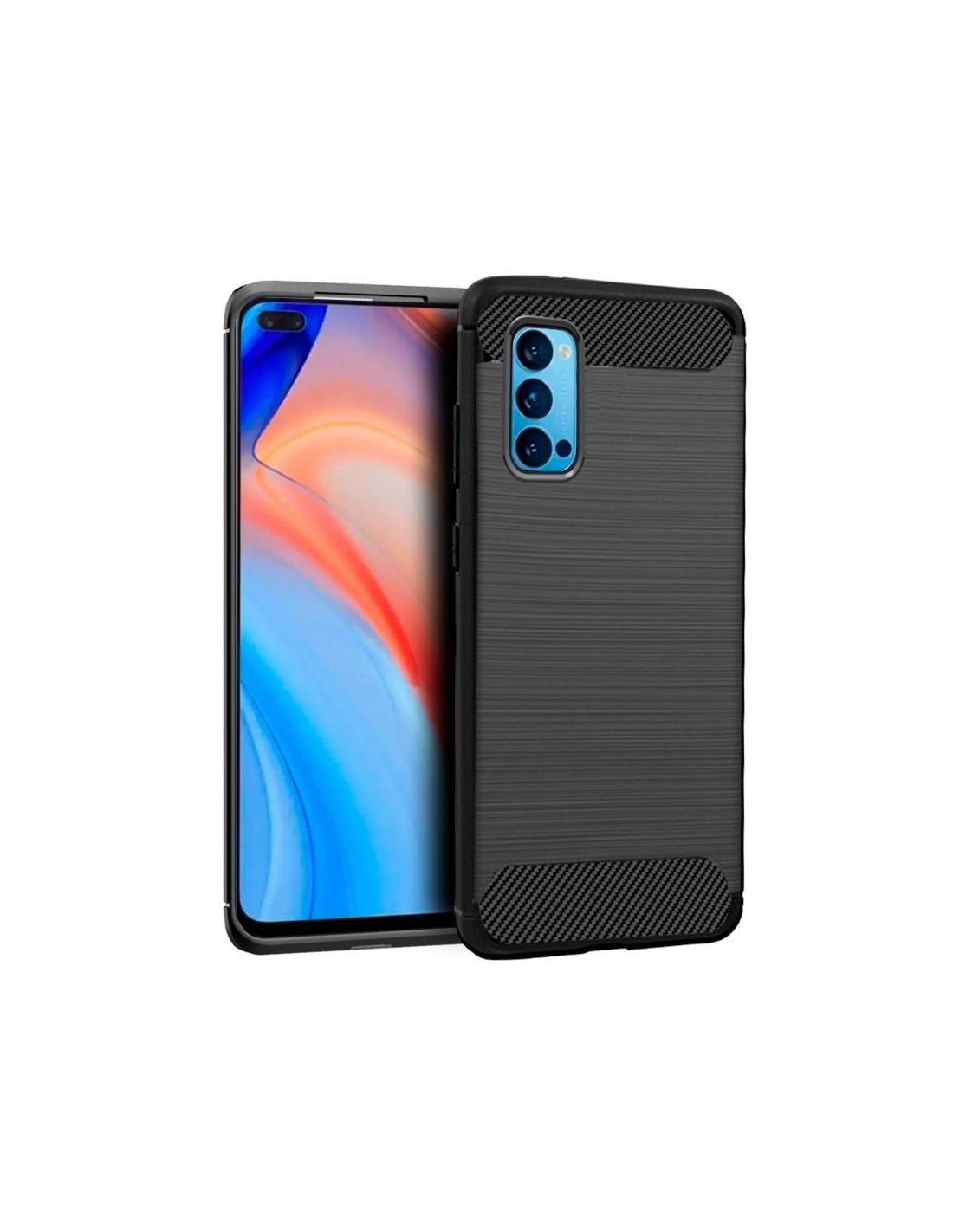 Carcasa para Oppo Reno 4 Pro acabado en carbón de color negro.