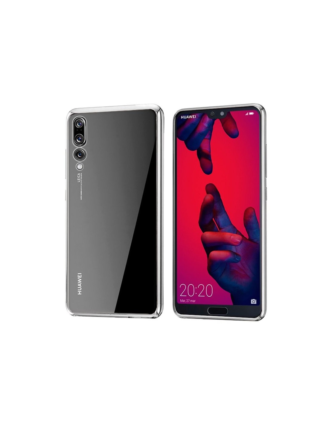 Carcasa TPU transparente Huawei P20 Pro borde metalizado plata