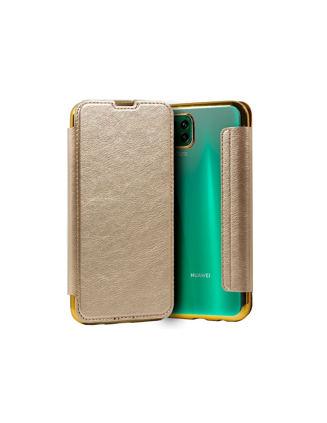 Funda de libro con soporte y trasera de gel TPU transparente para Huawei P40 Lite. Apertura lateral tipo Flip Cover.