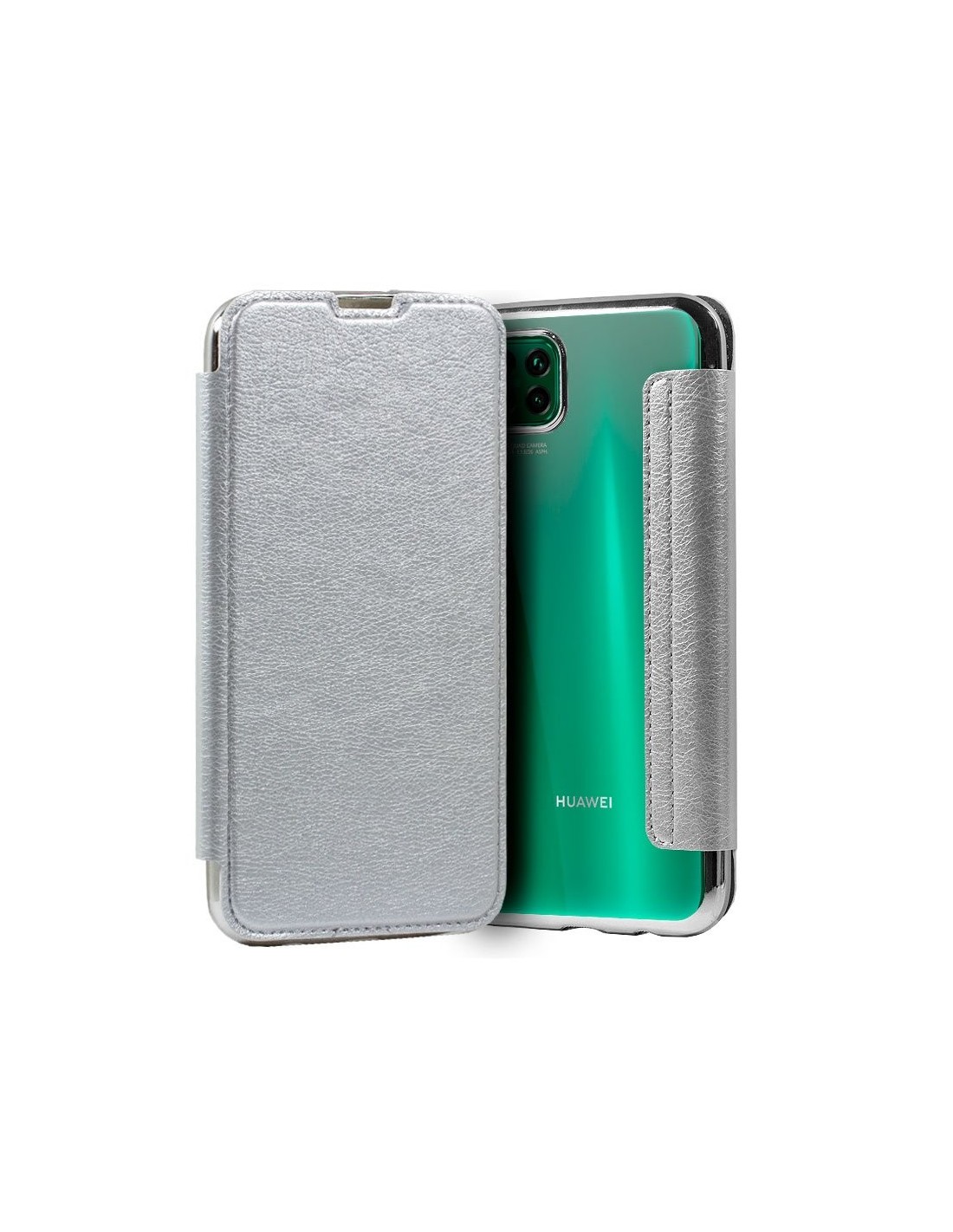 Funda de libro con soporte y trasera de gel TPU transparente para Huawei P40 Lite. Apertura lateral tipo Flip Cover.