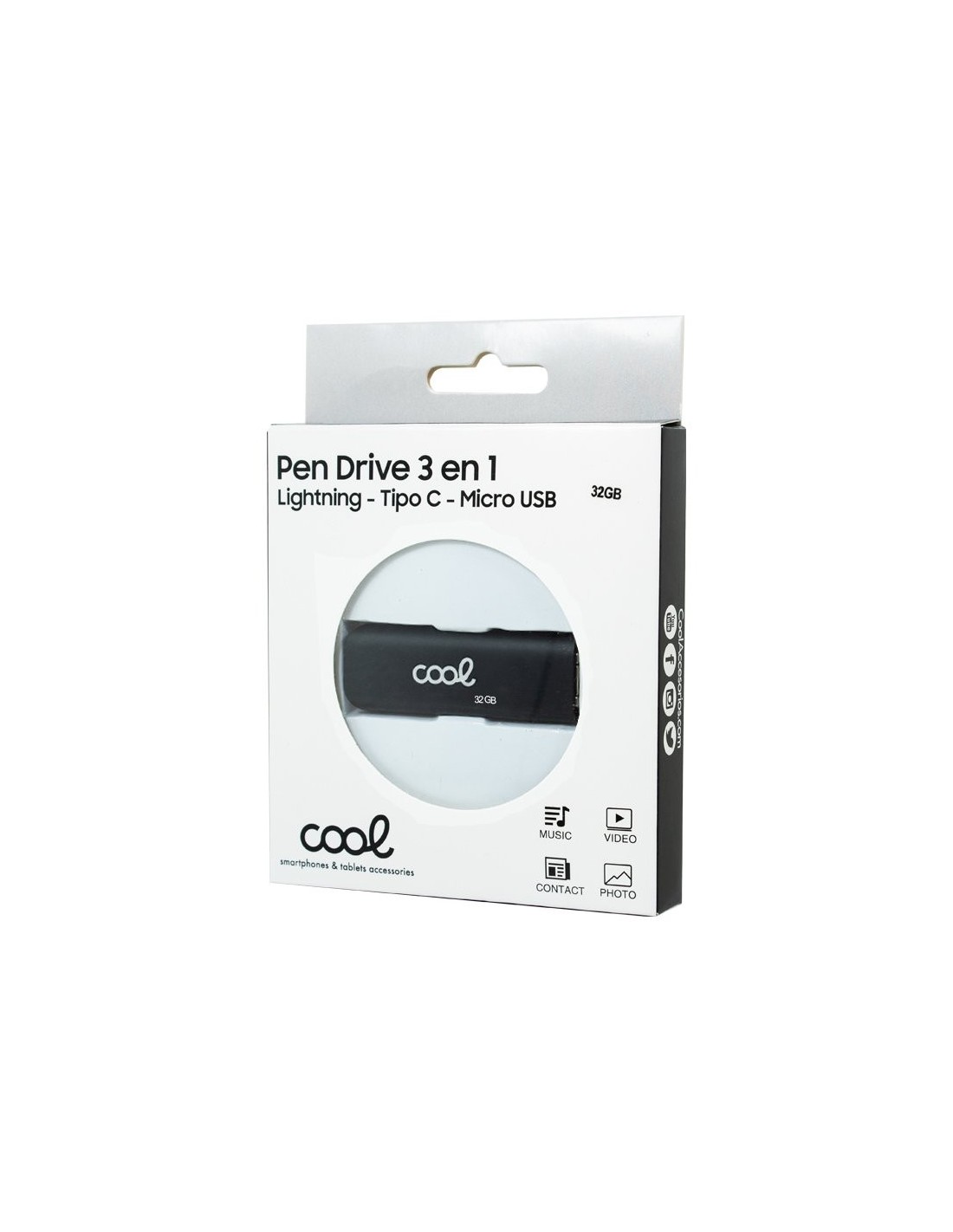 Pen Drive Cool 3 en 1, multiconexión: Lightning (iPhone / iPad), TIPO-C y Micro-USB