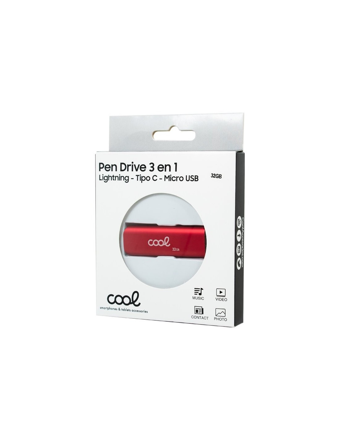 Pen Drive Cool 3 en 1, multiconexión: Lightning (iPhone / iPad), TIPO-C y Micro-USB